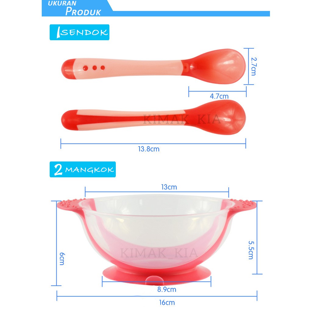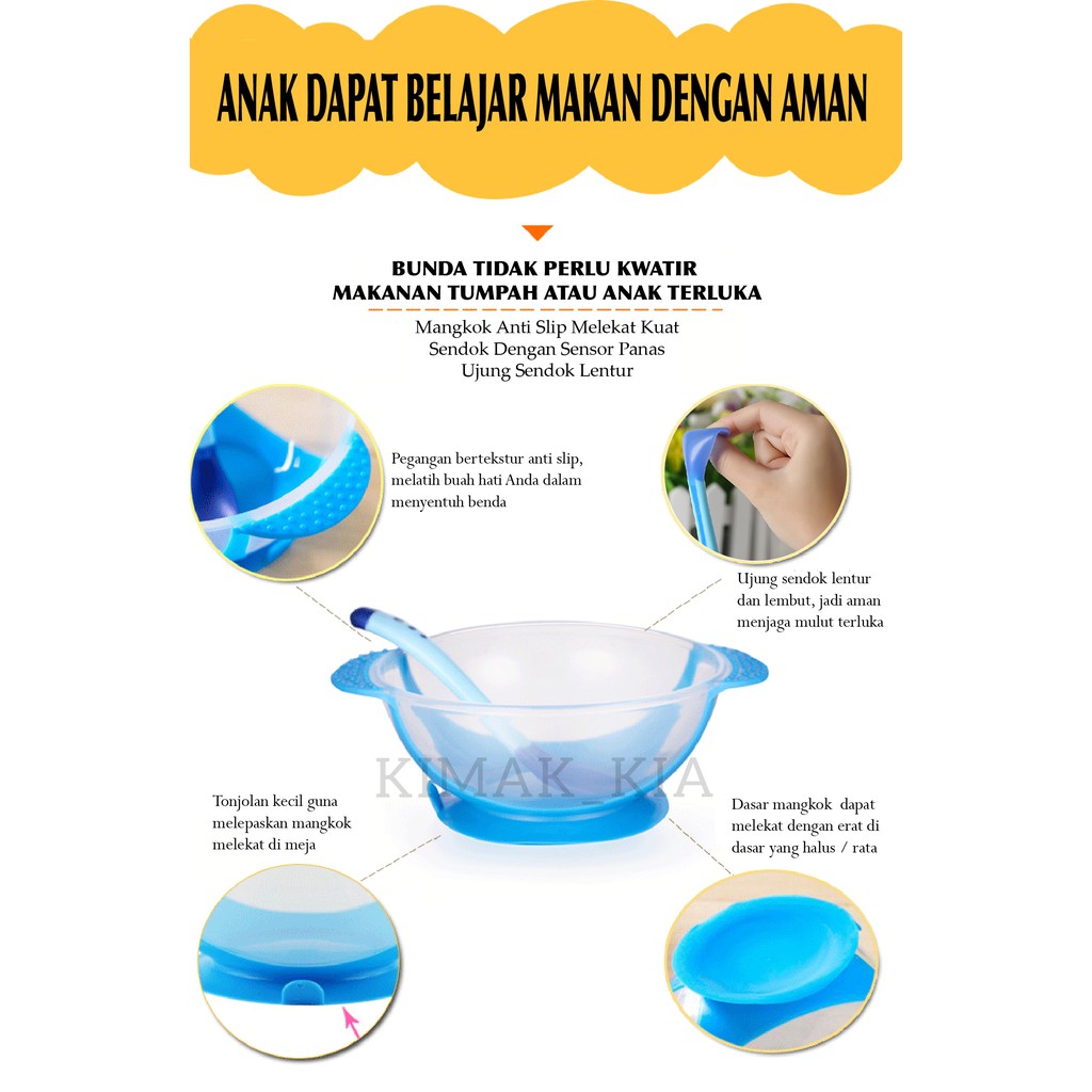 Harga 1 MANGKOK PIRING MAKAN BAYI MANGKUK MAKAN ANAK ANTI SLIP ANTI PANAS SENDOK BAYI SENSOR PANAS