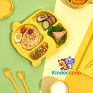 Piring dan sendok makan bayi set sekat 3 devided plate with spoon feeding set piring BPA FREE S1