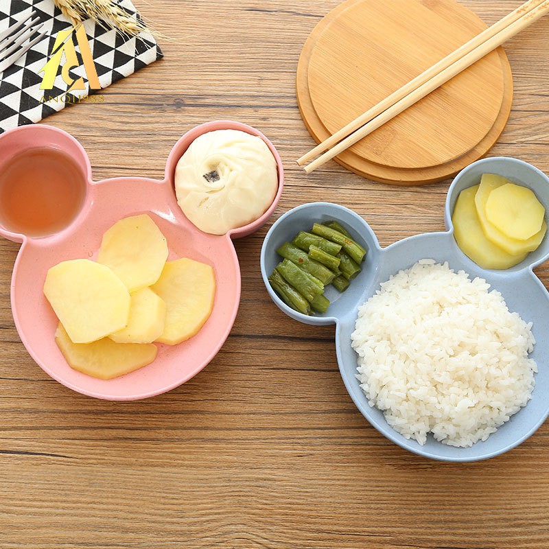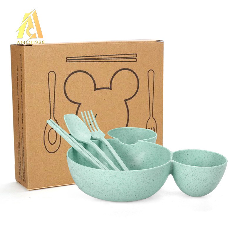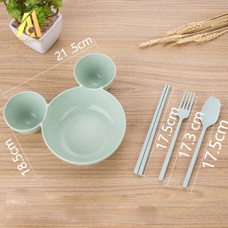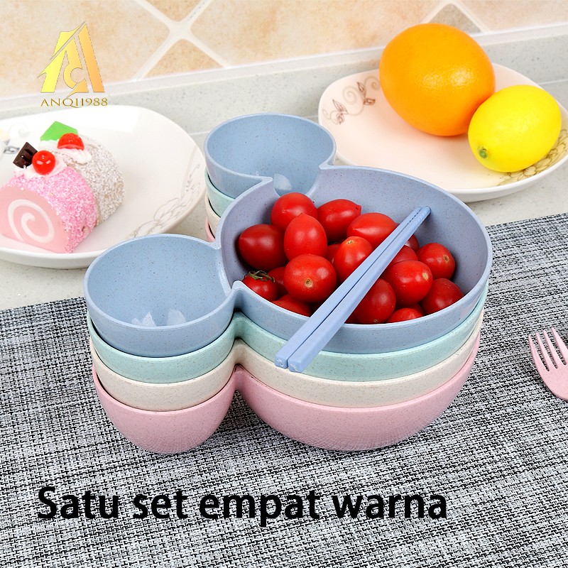 Harga ANQI 1988 Mangkok Set Peralatan Makan Anak 4 in1Bahan Jerami Gandum Children Tableware Piring VS-25