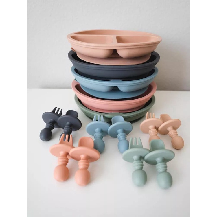 Harga BabyBeeBoo SET MAKAN BAYI SILIKON MANGKOK PIRING SENDOK GARPU PREMIUM ANTI TUMPAH No Suction Silicone Plate Bowl Spoon Fork
