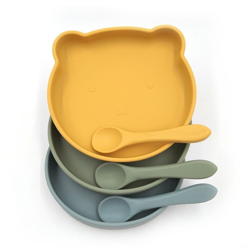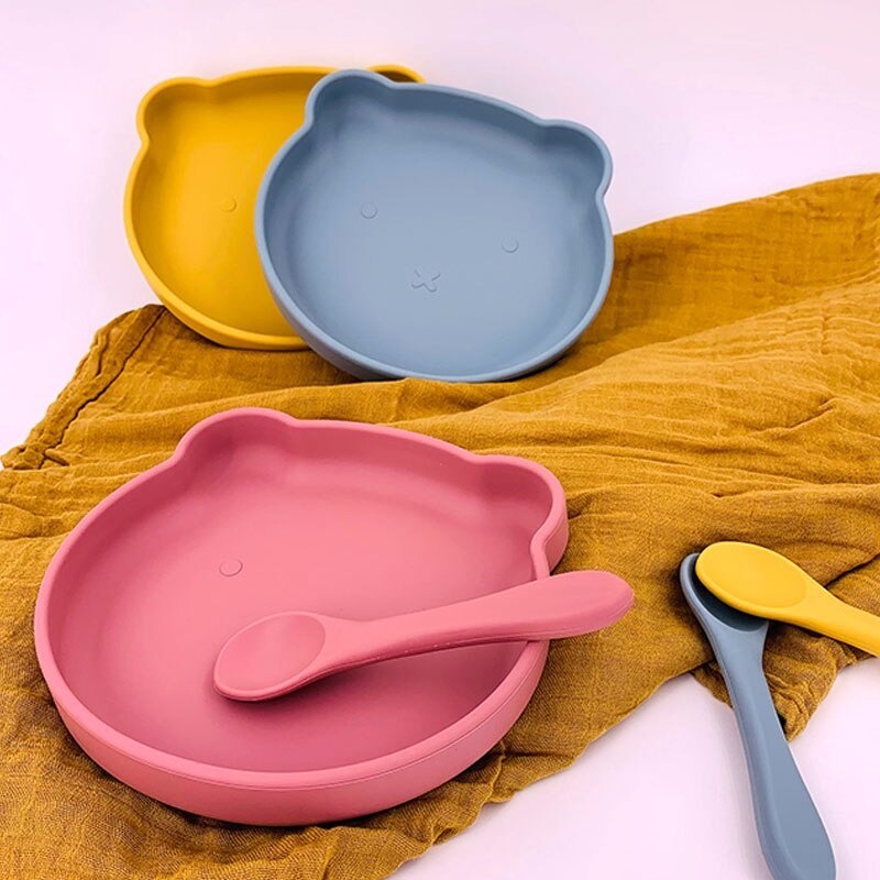 Harga BabyBeeBoo SET TEMPAT MAKAN BAYI SILIKON PIRING + SENDOK SUCTION PREMIUM BABY PLATE & SPOON BEAR SILICONE Alat MPASI Anti Tumpah