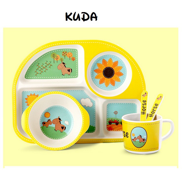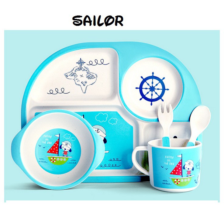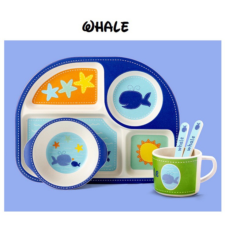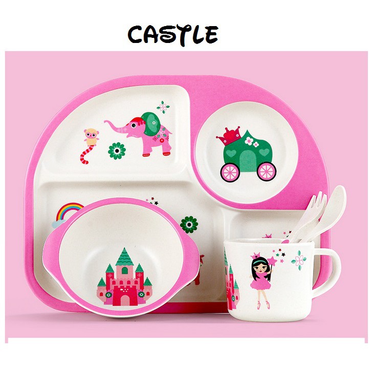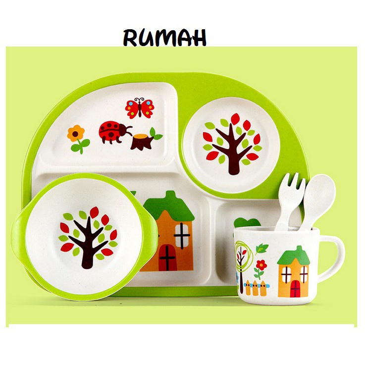Bamboo Fiber Feeding kids Set / Peralatan makan bayi / Piring anak Kotak / piring bamboo bambu