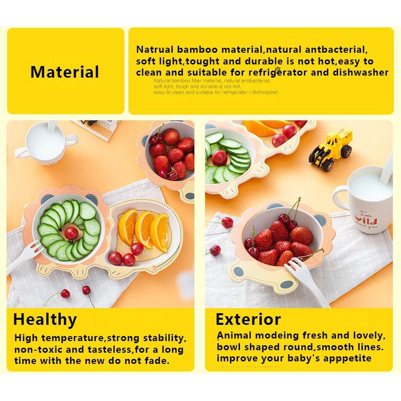 Set Alat Makan Anak 5in1 Karakter Hewan Lucu Dapat Piring Sampai Gelas / Lunch Plate Kids / Tempat Makan Anak