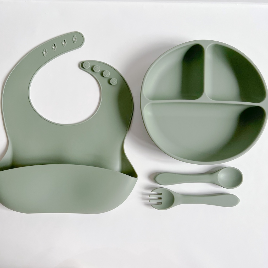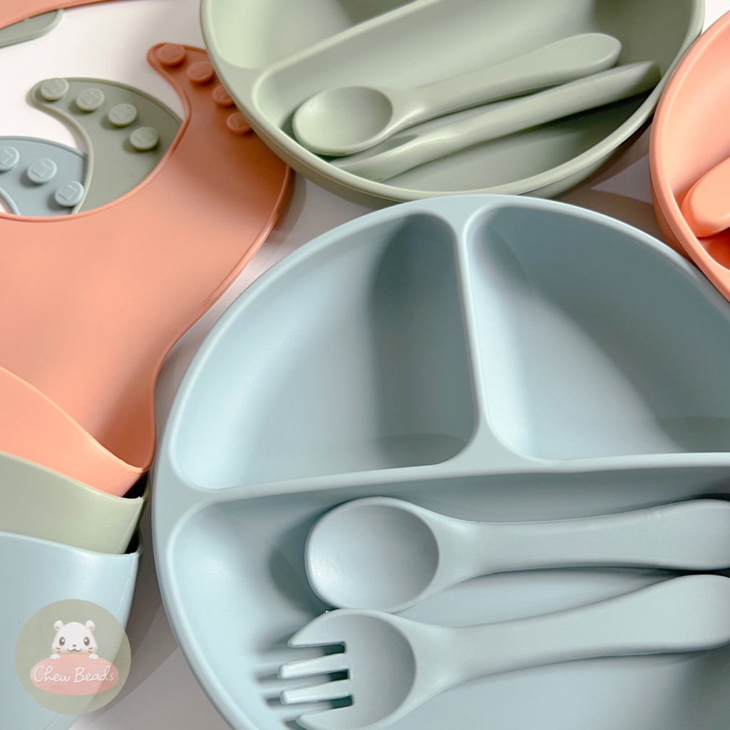 SUGARBABY PIRING MANGKOK MANGKUK DAN SENDOK GARPU Feeding set makan bayi sugar baby piring set mangkok silikon sugarbaby 4 in1 healthy silicone