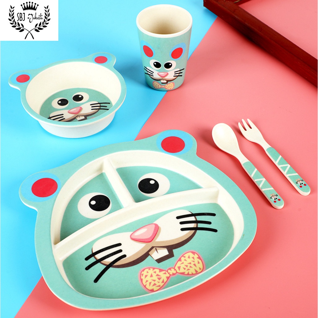 Peralatan Makan Anak Piring Sendok Mangkok Cangkir Sendok Garpu Bamboo Fiber Tableware Baby Feeding Set Perlengkapan Kado Bayi Ulang Tahun