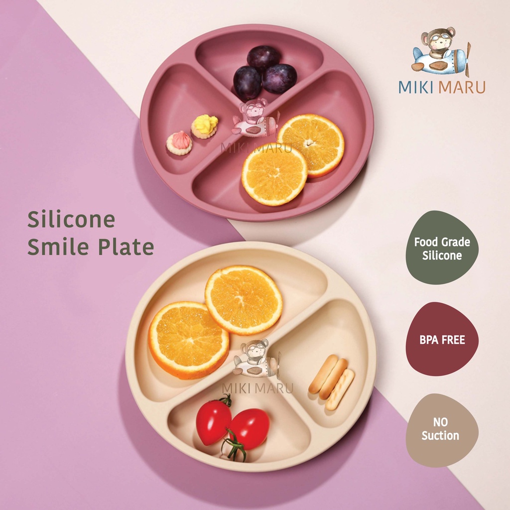 Mikimaru Baby Silicone Round Plate Premium | Food Grade Piring Bulat Makan Silikon Bayi Sendok Garpu BPA Free
