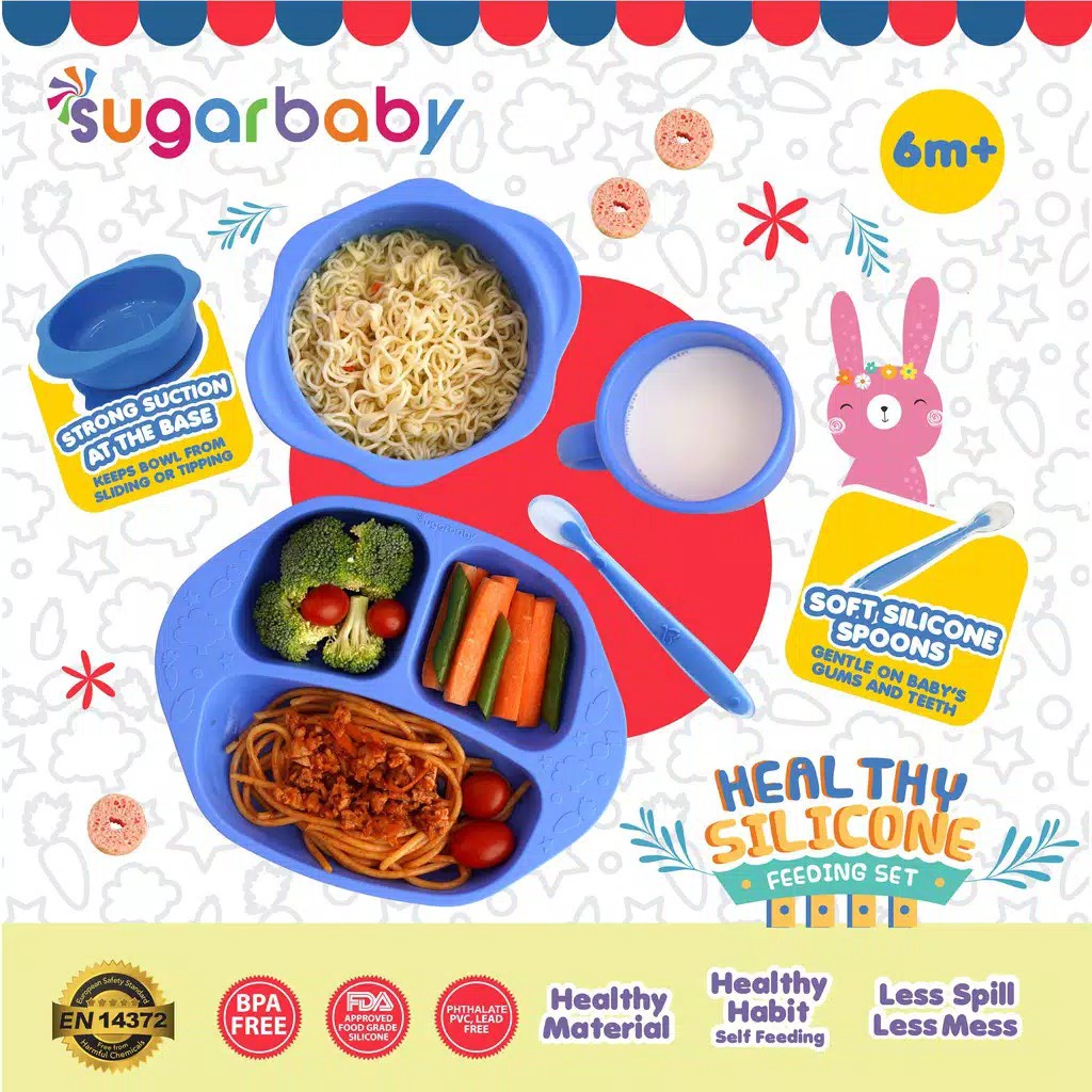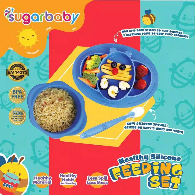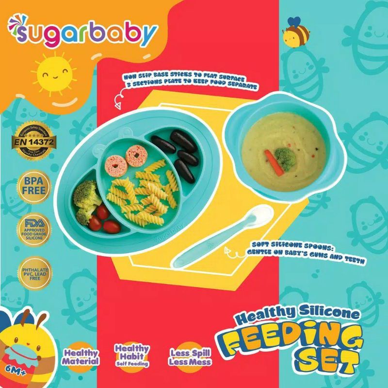 Harga Feeding Set Makan Bayi SUGARBABY Piring Set Mangkok Silicone Wadah makan Bayi Healthy Silicone FEEDING SET ISI 3 ALAT MAKAN BABY SUGARBABY