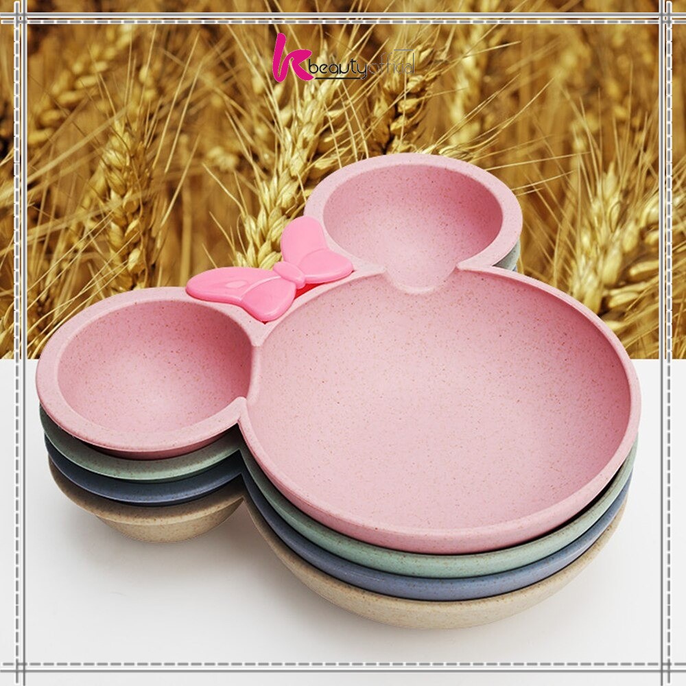KB-C373 Piring Makan Anak Karakter Miki Set Sendok Garpu / Mangkok Makan Wheat Straw / Tempat Makan Anak Set / Mangkuk Makan Bayi Bahan Jerami Gandum
