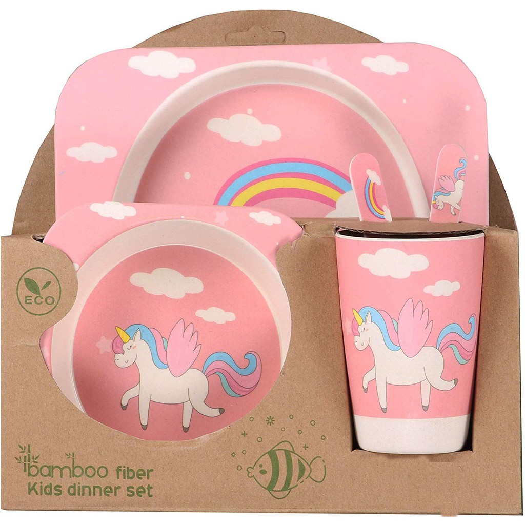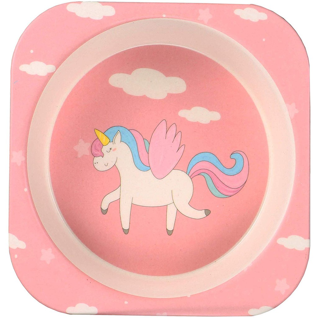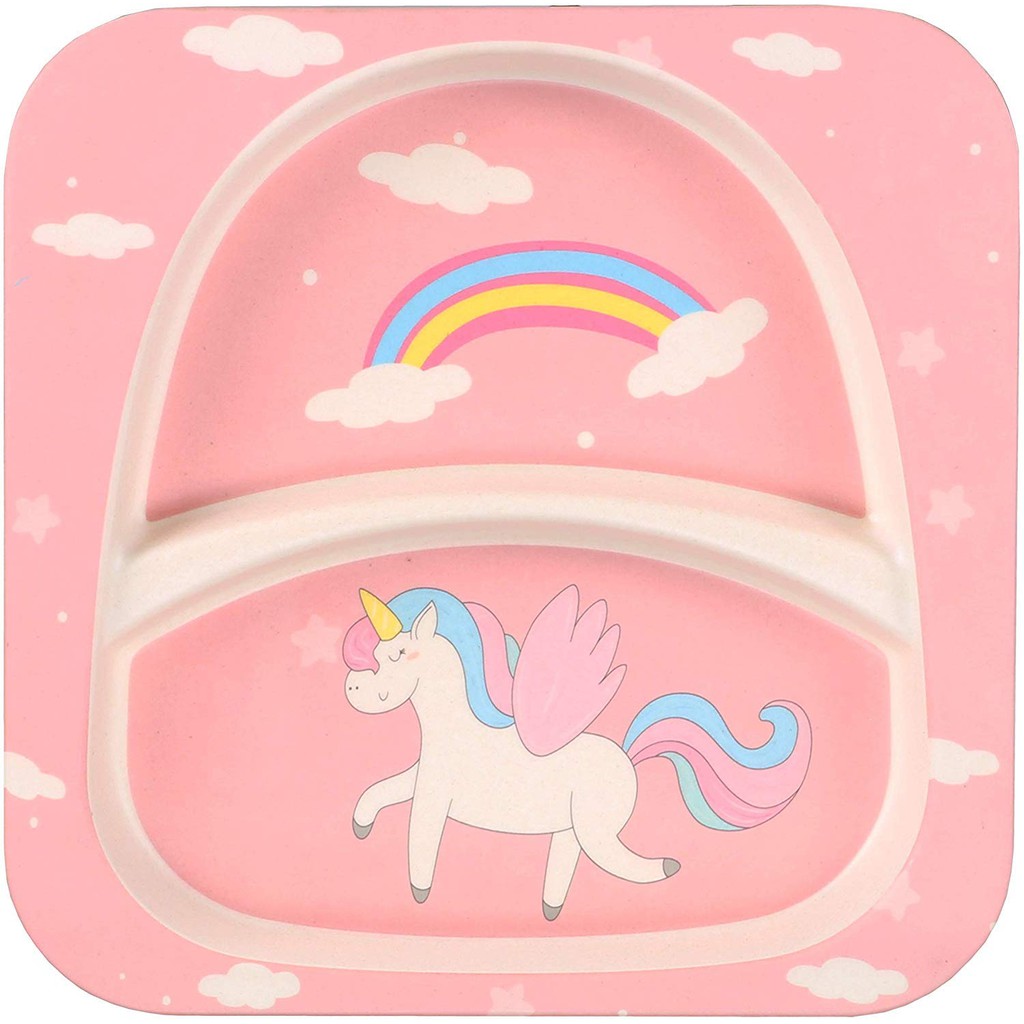 Harga Peralatan Makan Anak Serat Bambu Unicorn / Piring Makan Anak set Unicorn / Piring Makan Serat Bambu