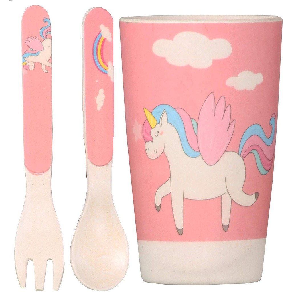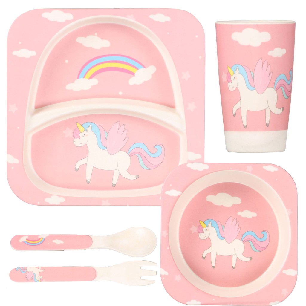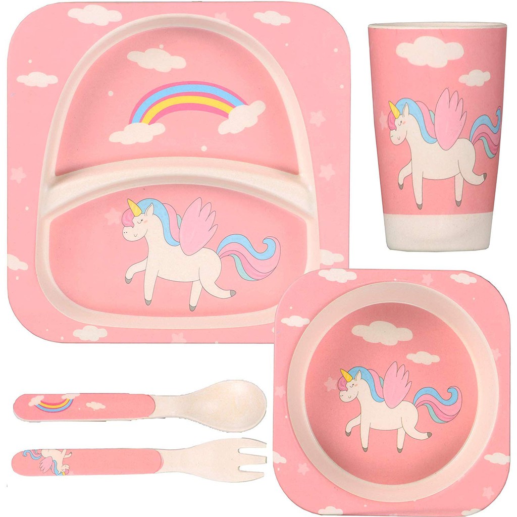 Harga Peralatan Makan Anak Serat Bambu Unicorn / Piring Makan Anak set Unicorn / Piring Makan Serat Bambu