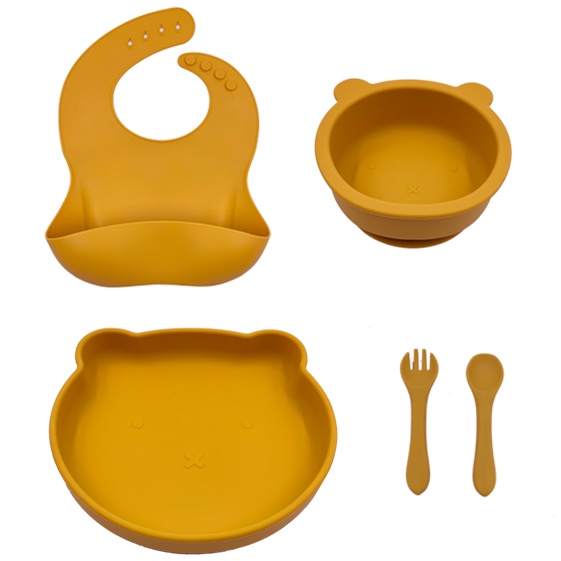Harga Peralatan Makan Bayi Silicone Set 4in1 Food Grade Baby Feeding Set Suction Piring Suction