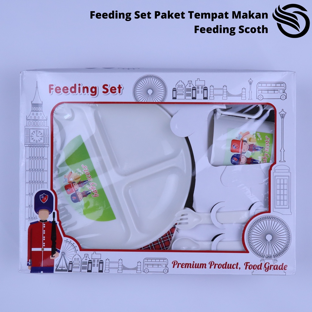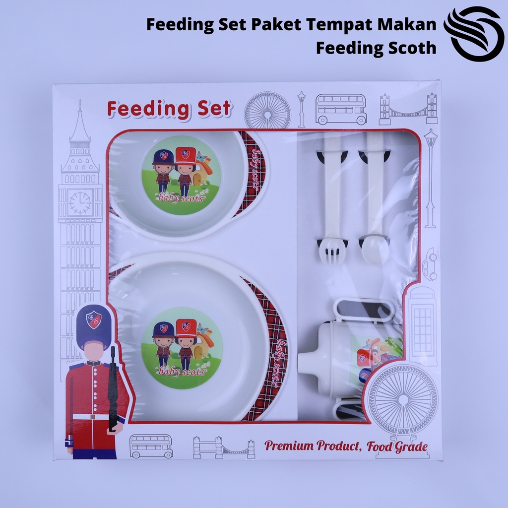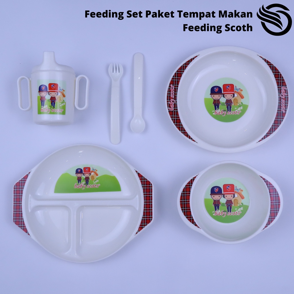 Harga Peralatan Makan Bayi _ Tempat Makan Bayi Set FEEDING BABY SCOTS Piring Sendok Bayi Sensor Panas Anti Tumpah Set Alat Makan Bayi _Mangkok makanan bayi Feeding set Baby Scots