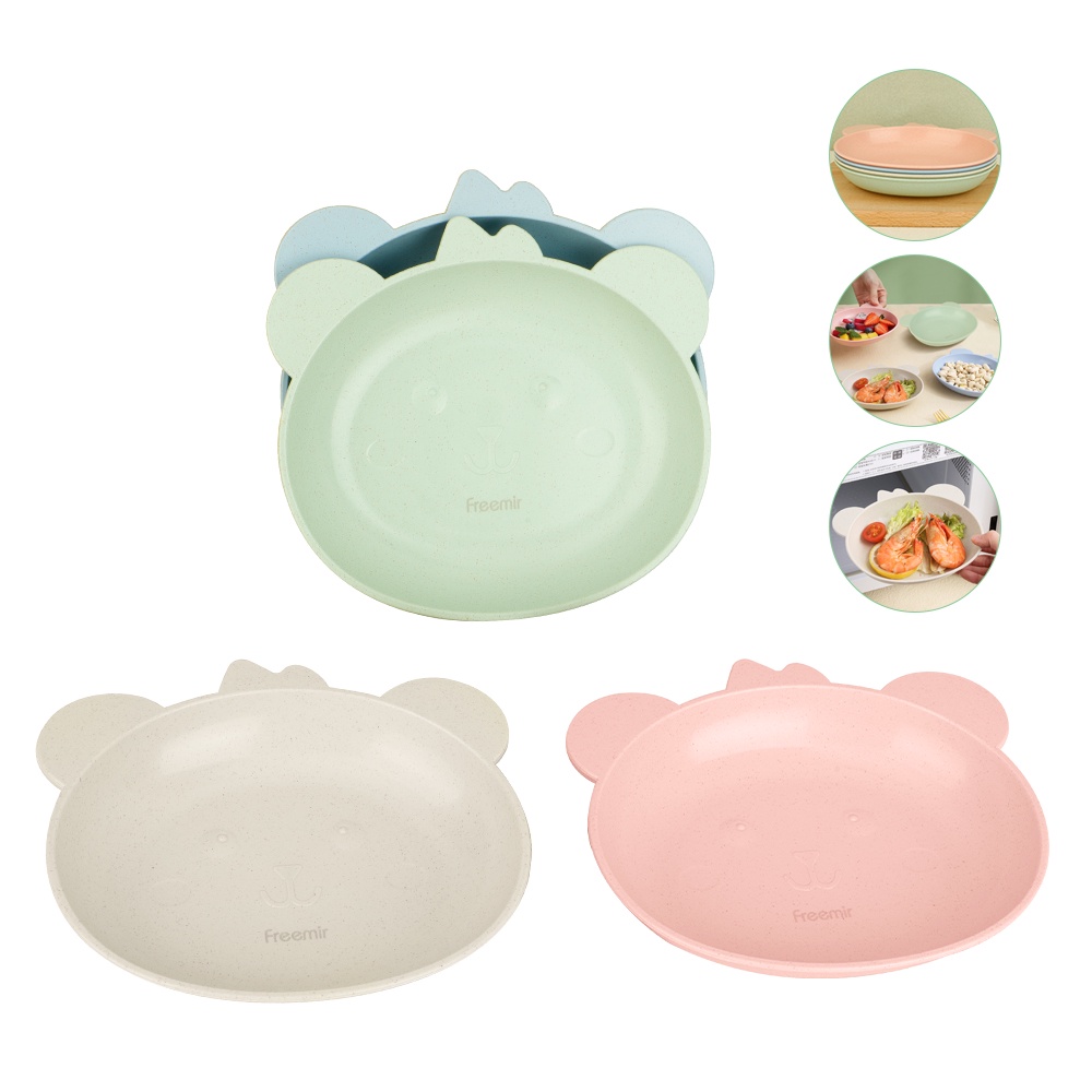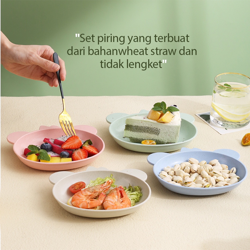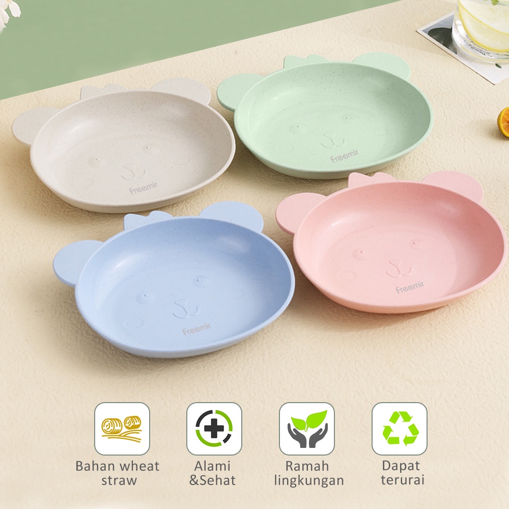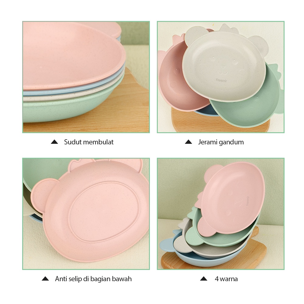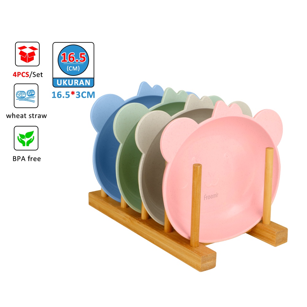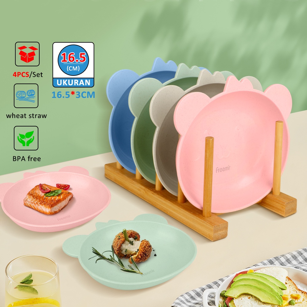 Freemir Buy 1 Get 1 Free Plate Set 4 Pcs Wheat Straw Warna-Warni Pastel Lucu Murah Piring Makan Piring Anak Piring Bayi