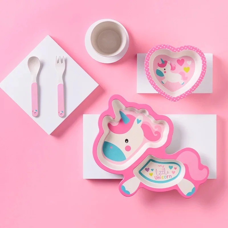 Alasan kenapa harus beli Piring Makan Anak Unicorn/5 pcs Peralatan Makan Anak Serat Bambu Unicorn / Piring Makan Unicorn Set sekarang