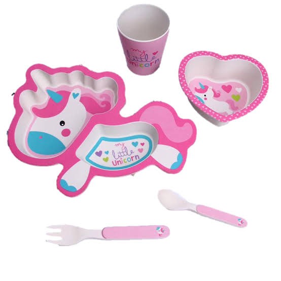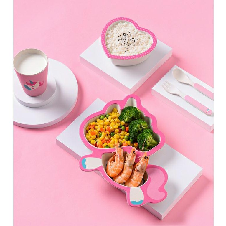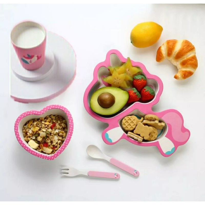 Harga Piring Makan Anak Unicorn/5 pcs Peralatan Makan Anak Serat Bambu Unicorn / Piring Makan Unicorn Set