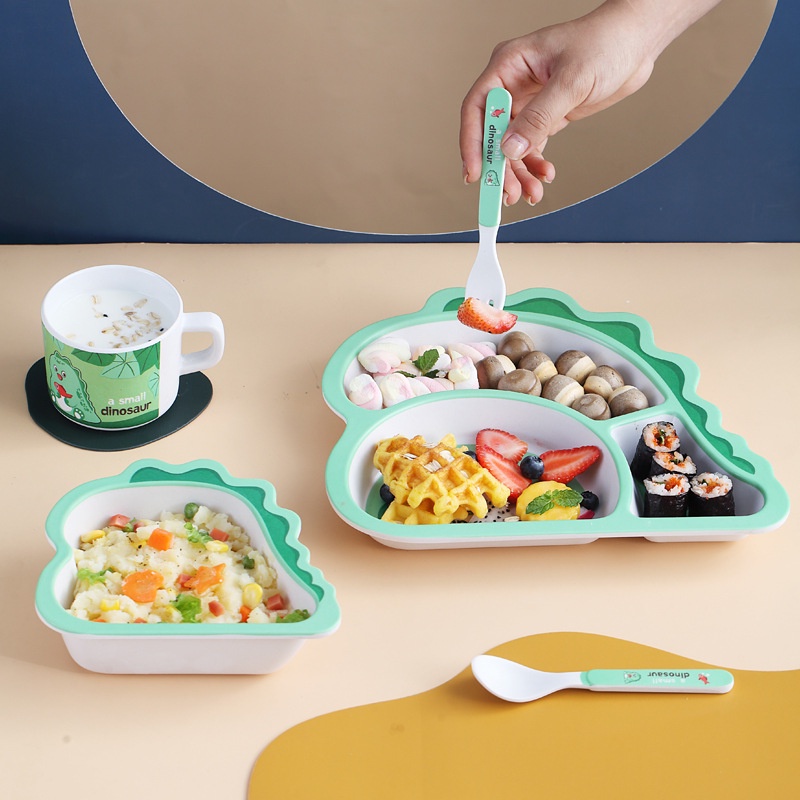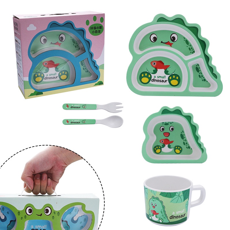 Set alat makan anak/Peralatan makan set/Peralatan Makan Sendok Dan Garpu Desain Dinosaurus Untuk Anak/mangkuk piring