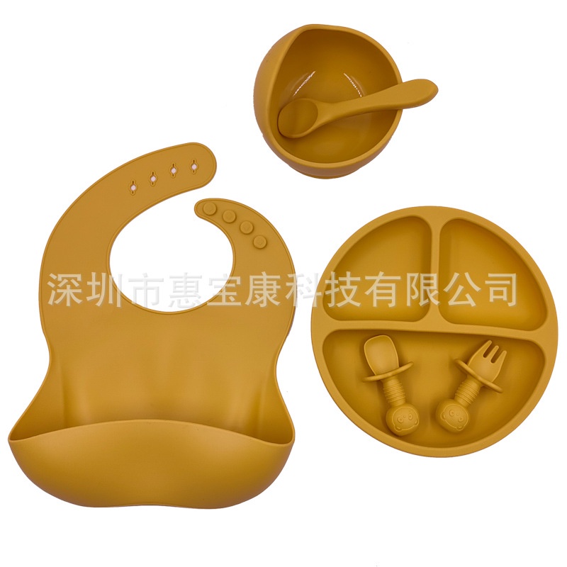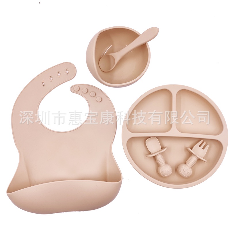 Harga Set Alat Makan Bayi Silikon Peralatan Makan Bayi Silicon Bib Piring Sendok Mangkok Suction Set Food Grade Baby Feeding Mangkok Silikon Suction dengan Sendok Mpas Bayi
