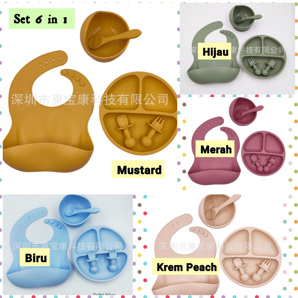 Kelebihan - Kelebihan membeli Set Alat Makan Bayi Silikon Peralatan Makan Bayi Silicon Bib Piring Sendok Mangkok Suction Set Food Grade Baby Feeding Mangkok Silikon Suction dengan Sendok Mpas Bayi di Toko ini