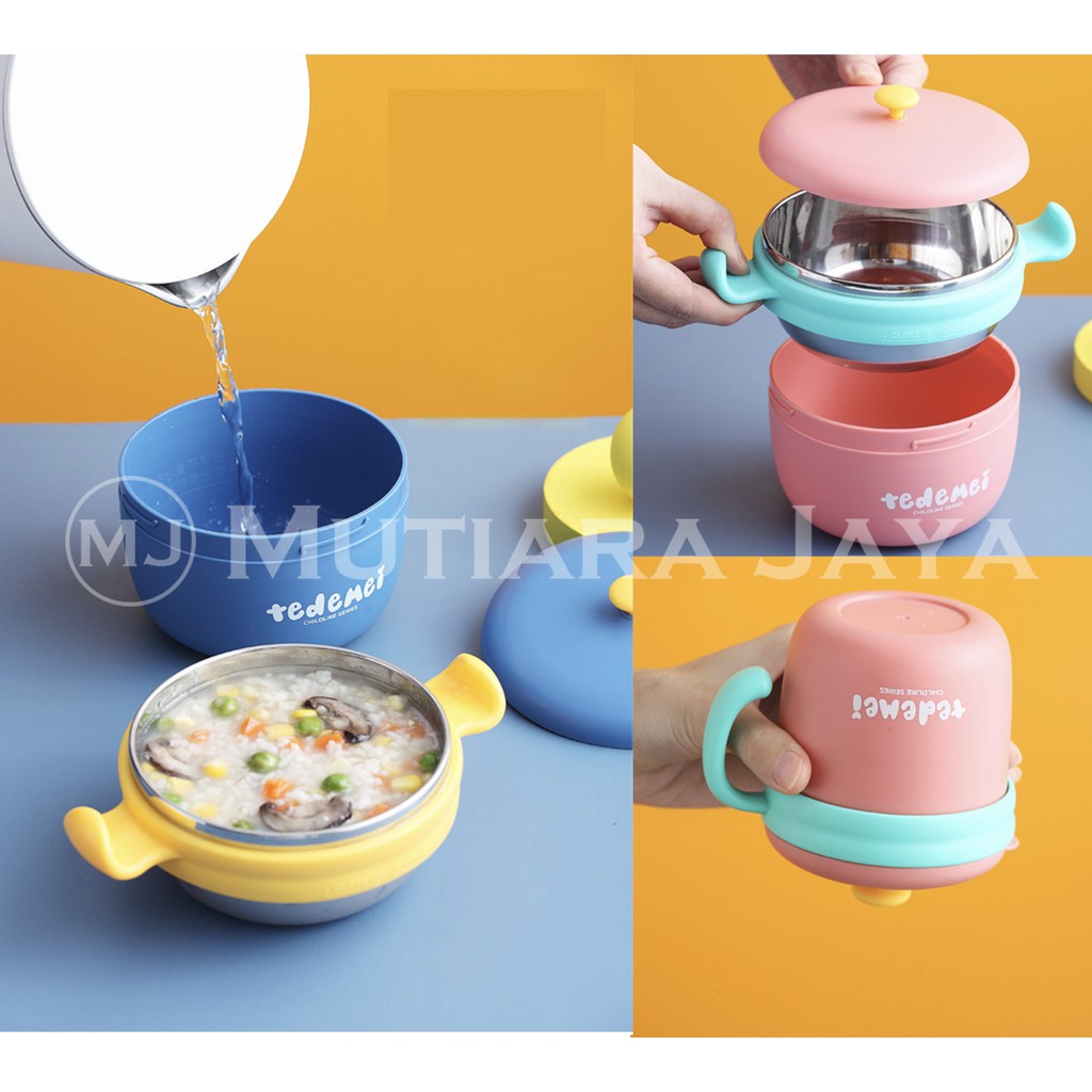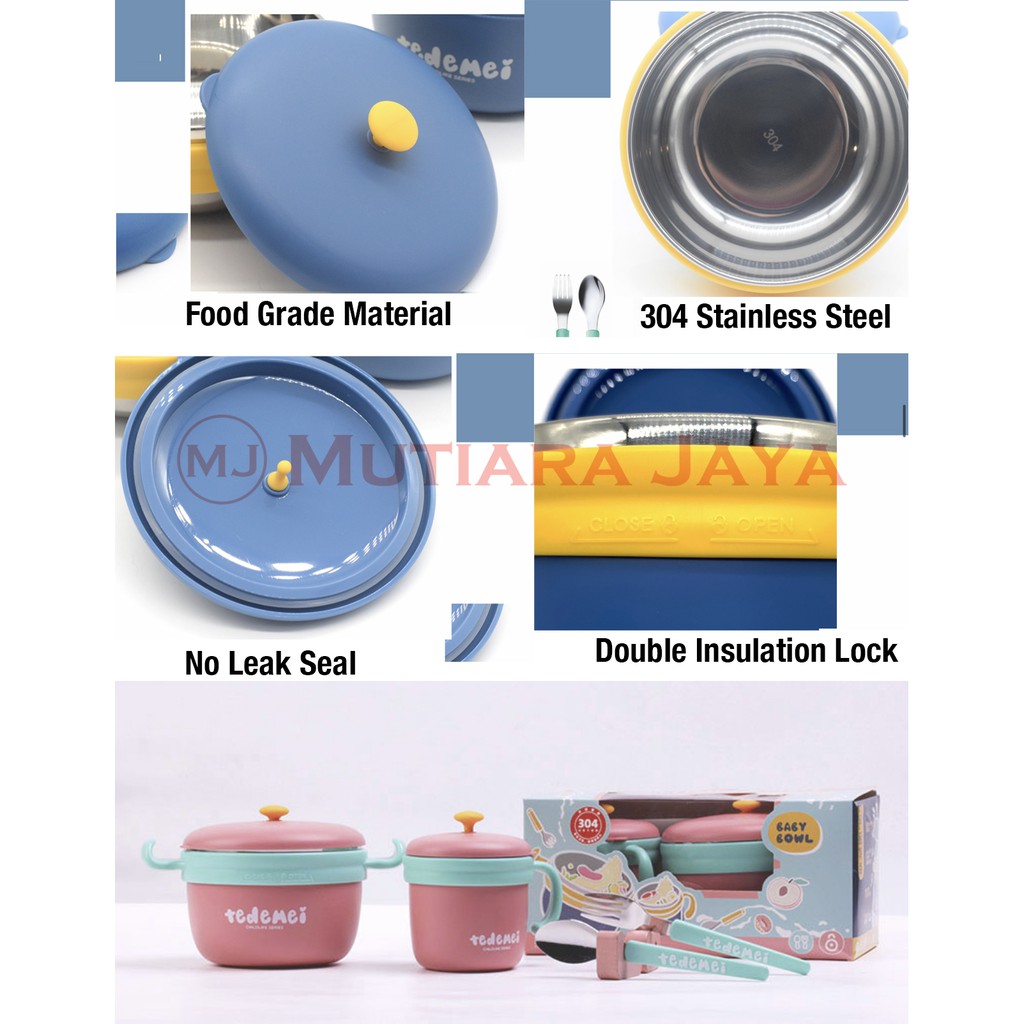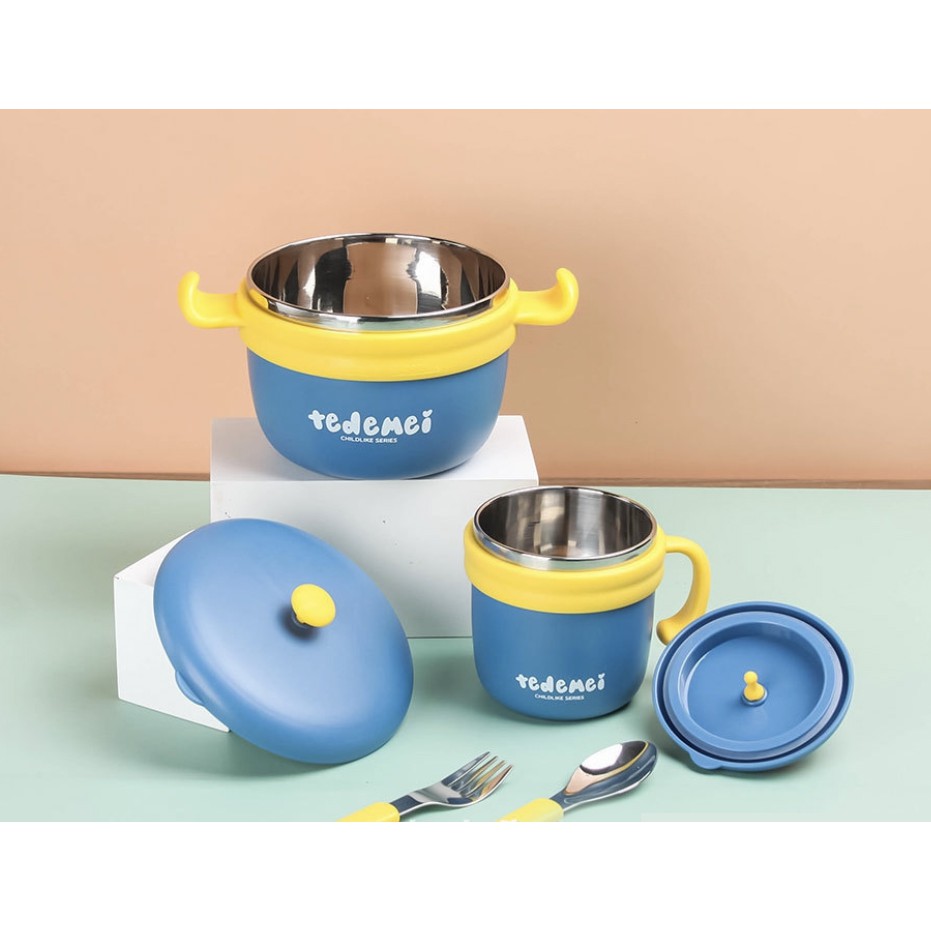 Harga TEDEMEI Stainless Set Gelas Mangkok Piring Tempat Makan Bayi Anak Kids