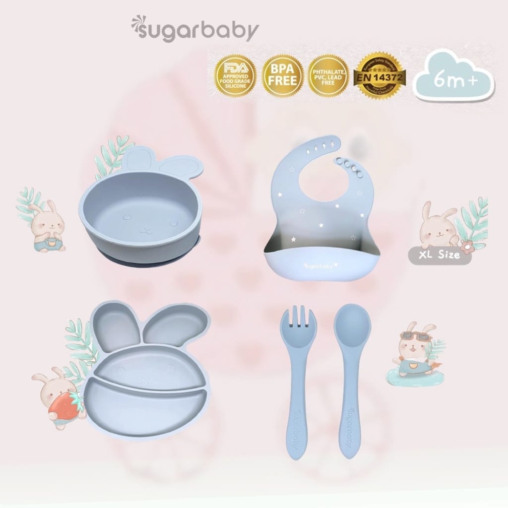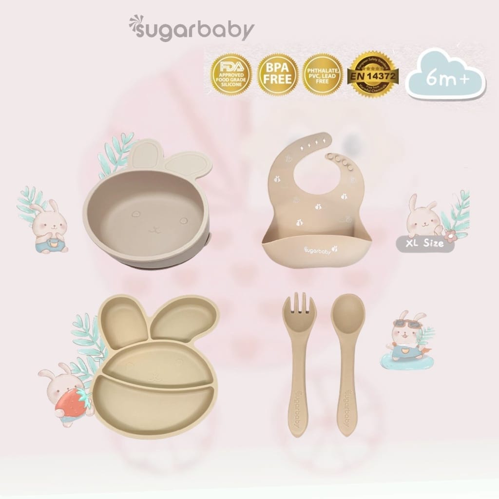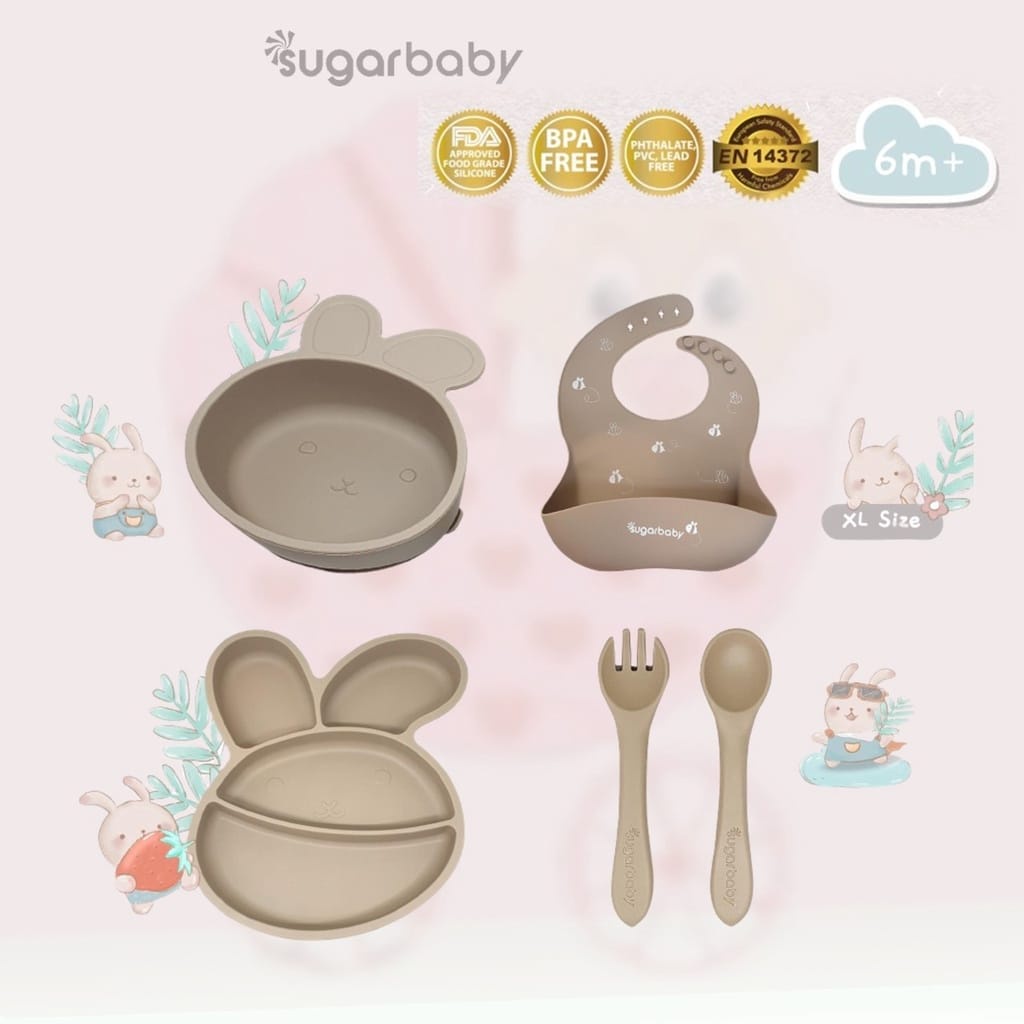 Harga TERLENGKAP SUGAR BABY HEALTHY SILICONE SPOON & FORK NATURE SERIES BIB / PLATE PIRING / BOWL MANGKOK