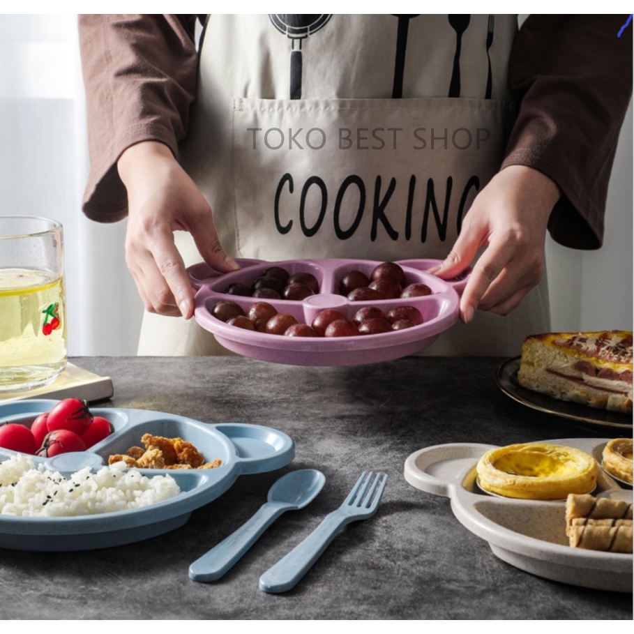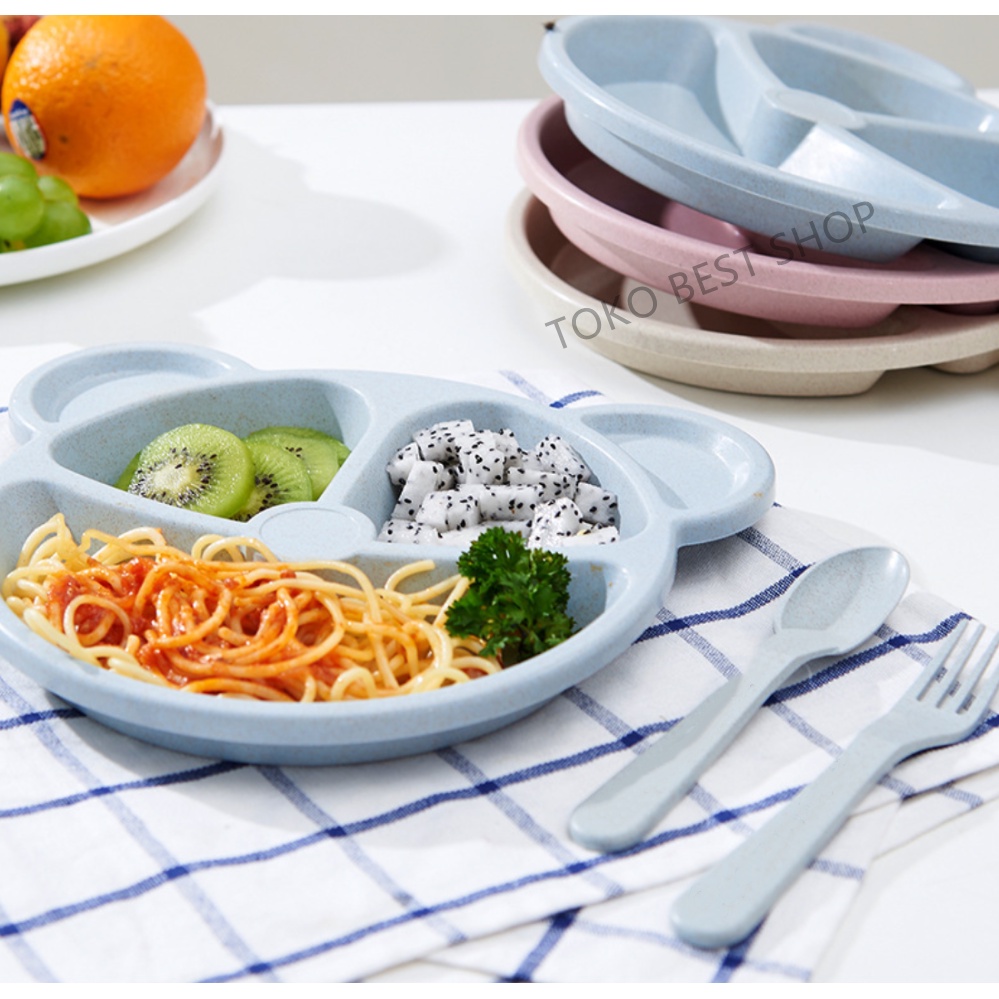 Kelebihan - Kelebihan membeli [TOKO BEST SHOP]Set piring makan anak-anak dari gandum dibagi kotak/Setelan tiga potong/Kotak Bekal Makan anak dan bayi/bahan Gandum organik/produk serat di Toko ini