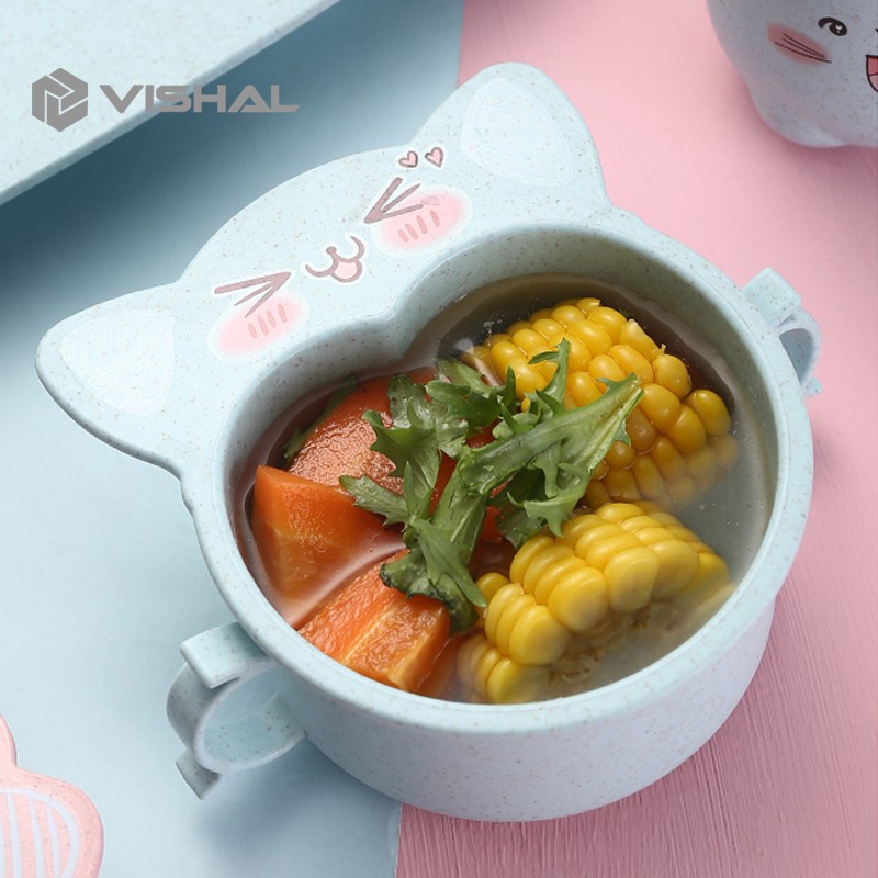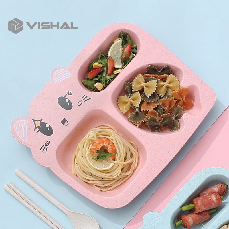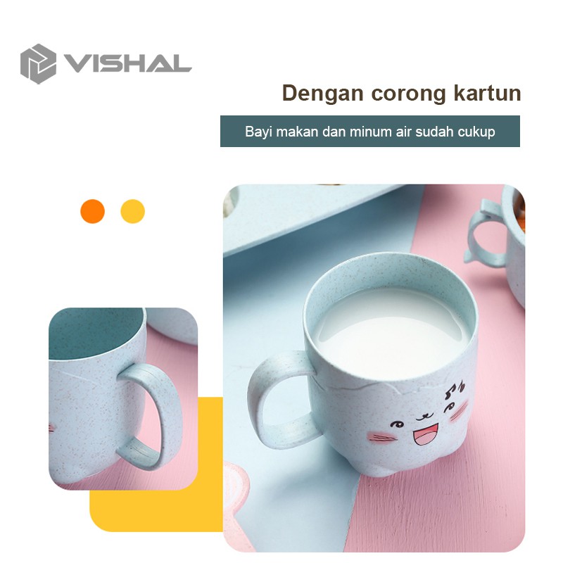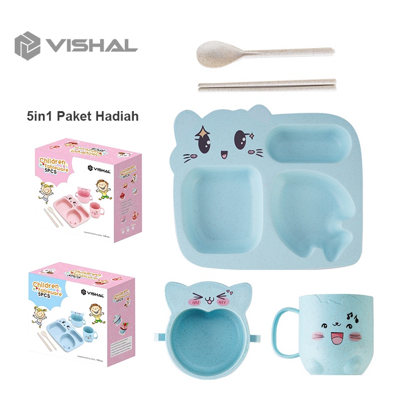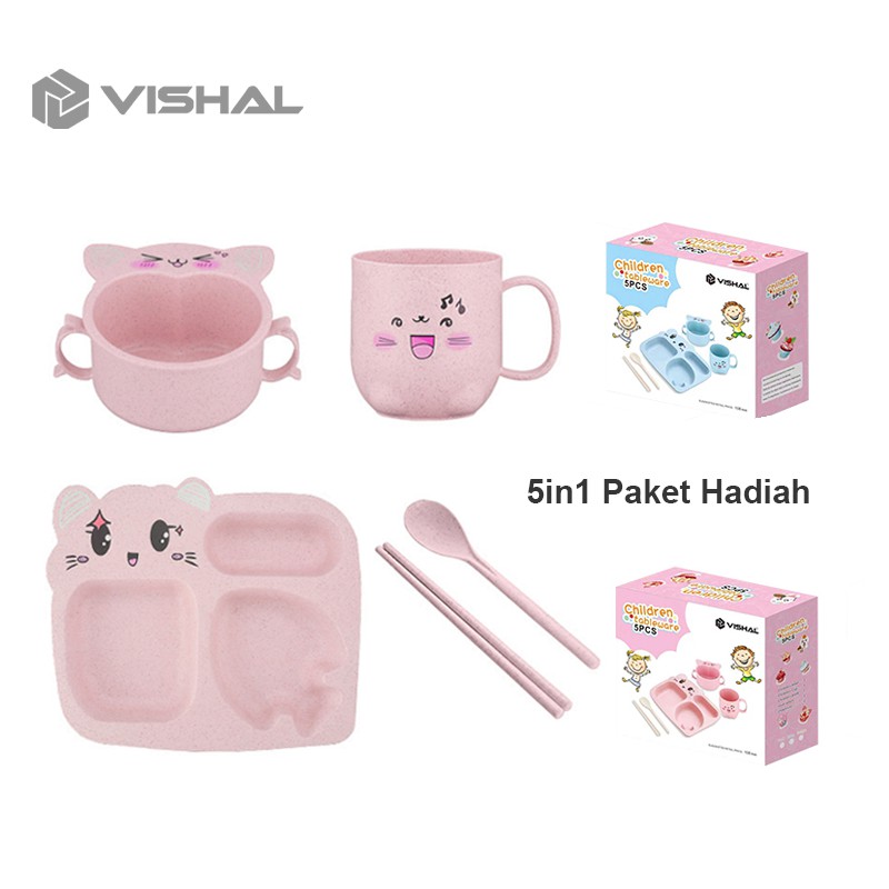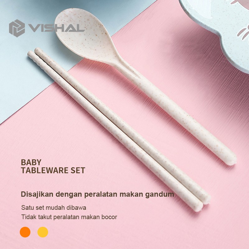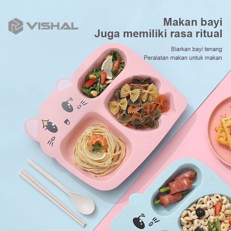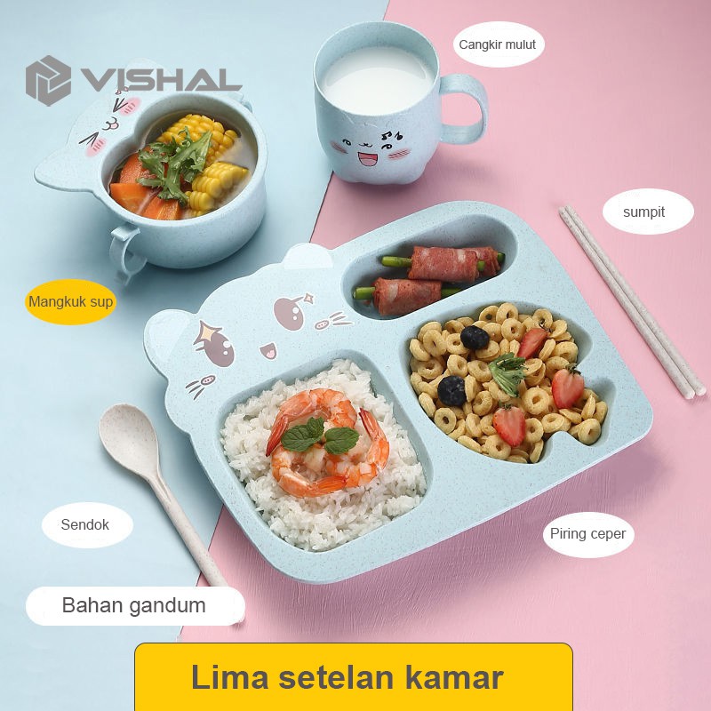 Harga VISHAL Tempat Makan Set + Gelas + Mangkok / Tempat Sendok Garpu&Amp Sumpit Piring Makan Anak Kartun