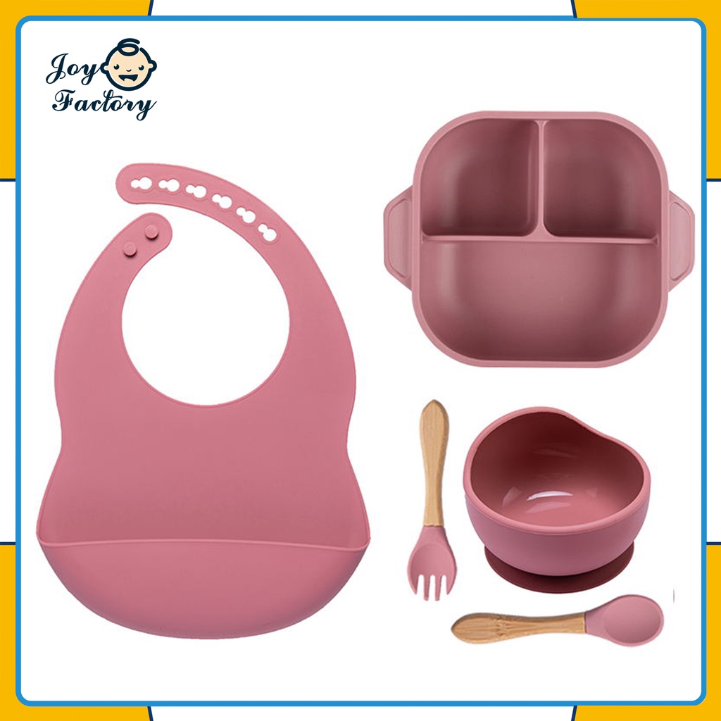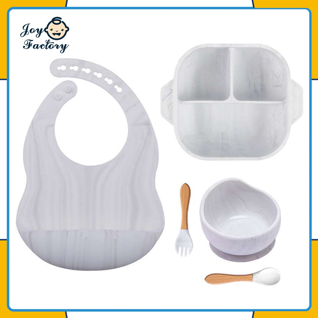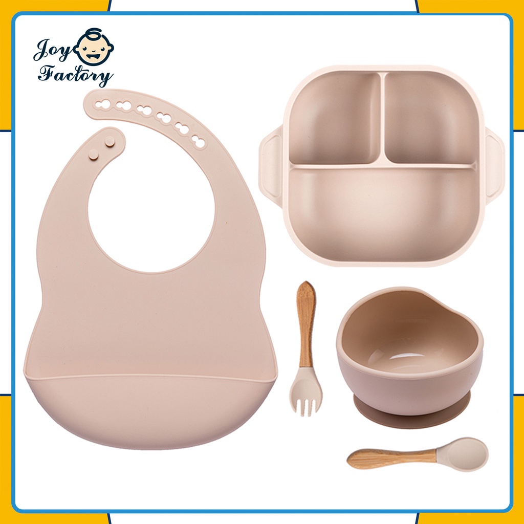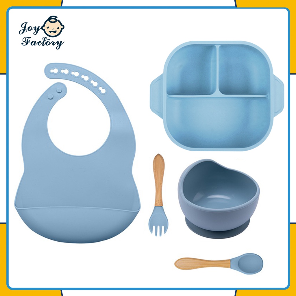 Harga 5 Pcs Silicone Baby Feeding Set Perlengkapan Makan Bayi Anak-anak Peralatan Mangkuk Piring Air Bib Sendok Garpu