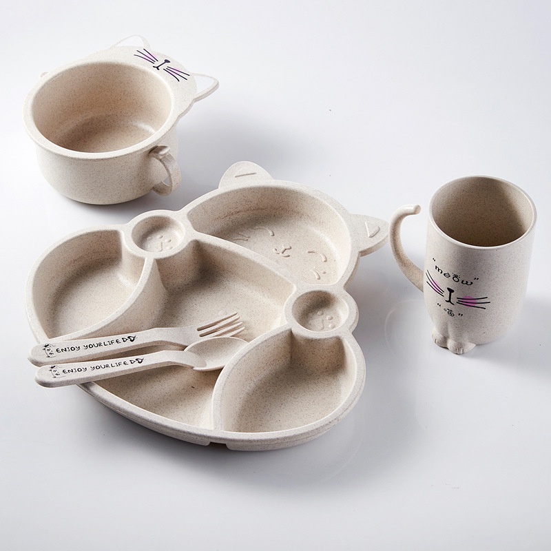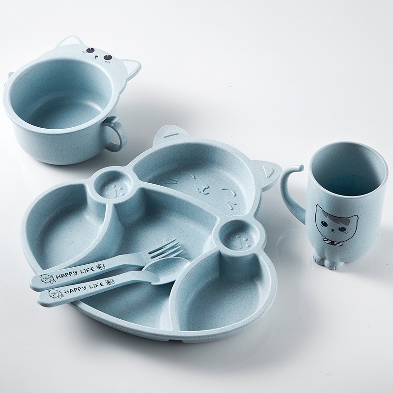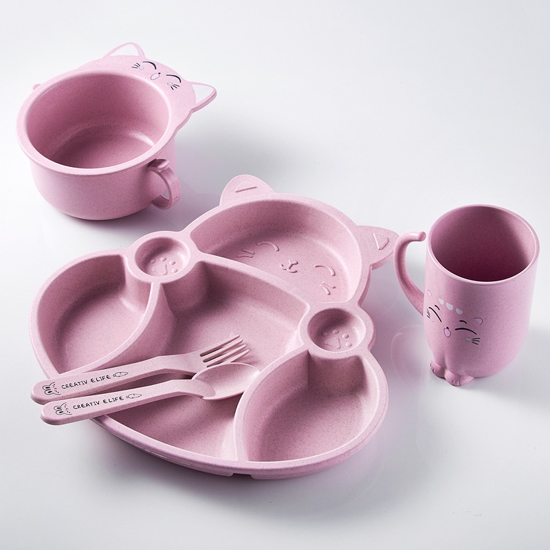 Harga 6 Setelan Peralatan Makan Jerami Gandum Anak Set Piring Balita Lengkap Sendok Garpu Piring Makan Anak Karakter