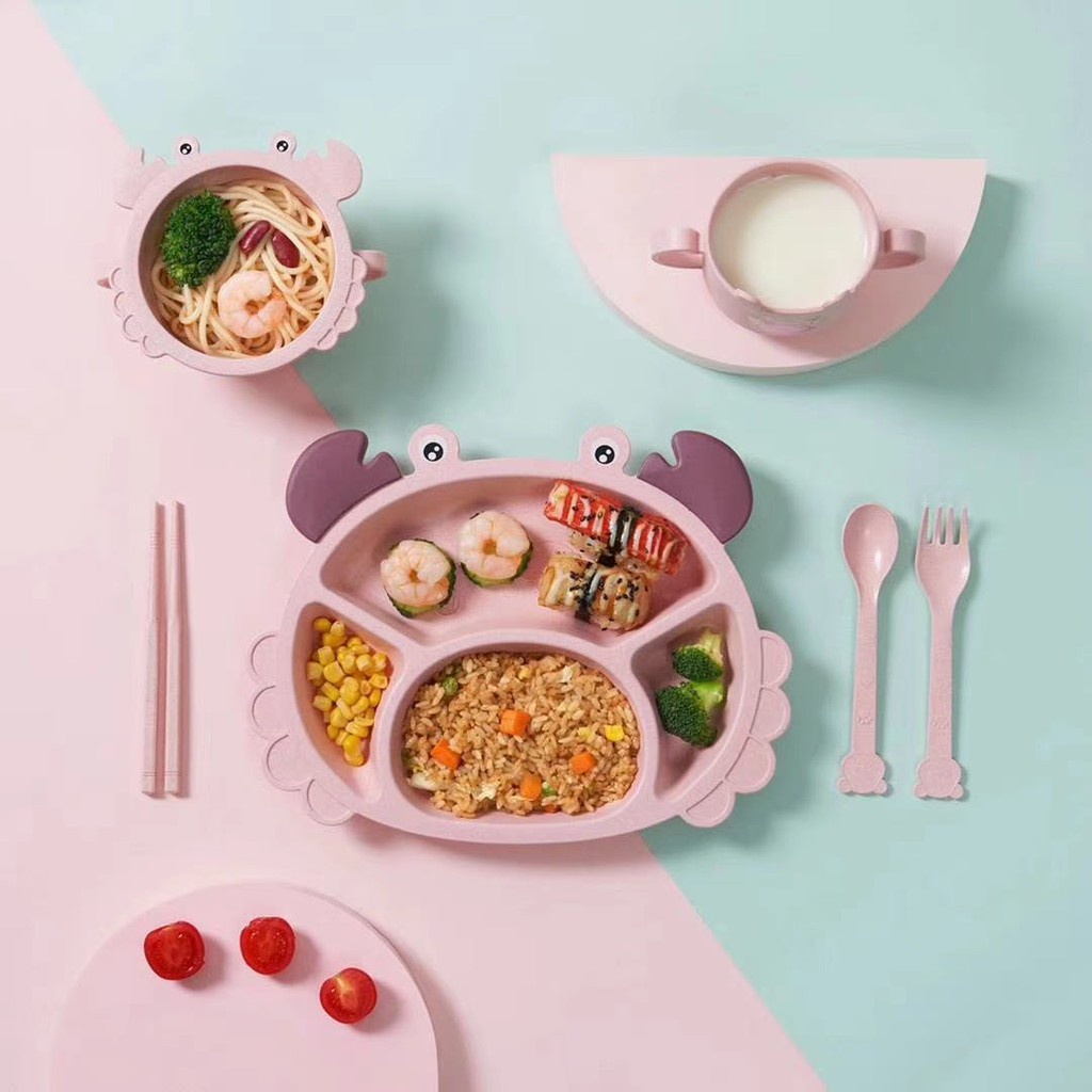 Alasan kenapa harus beli 6PCS Peralatan makan anak kepiting isi 6/piring makan anak, mangkok, gelas, peralatan makan sumpit sekarang