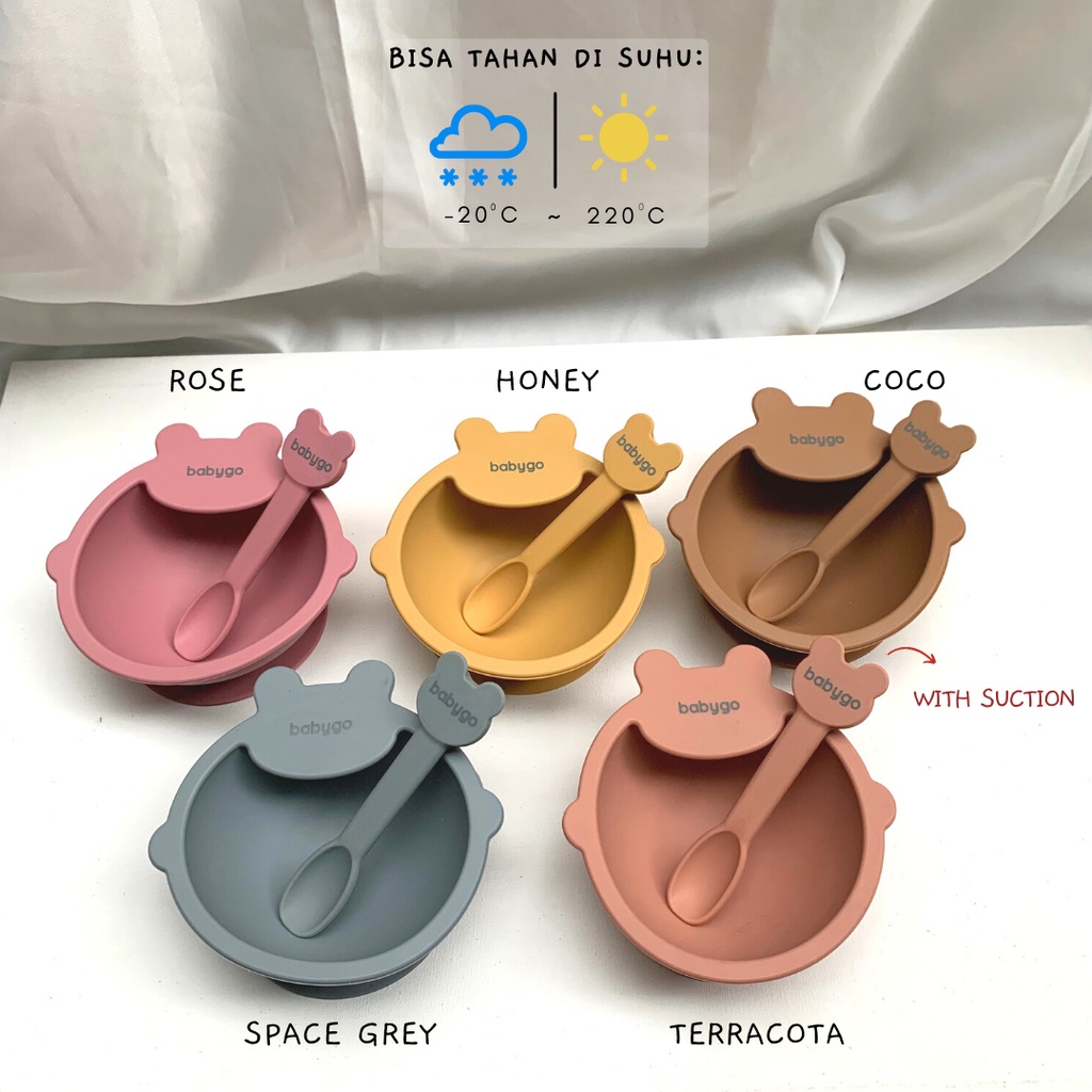 Harga BabyGO Mangkok Silikon Bayi / Silicone Baby Set / Silicone Suction Bowl Anak / Piring Sendok Silicone Baby / Peralatan Makan MPASI Bayi / Alat Makan Bayi