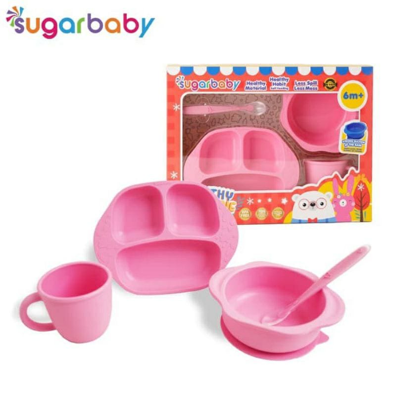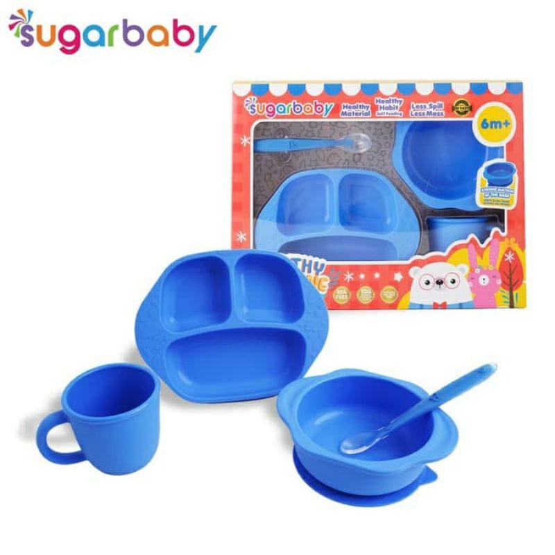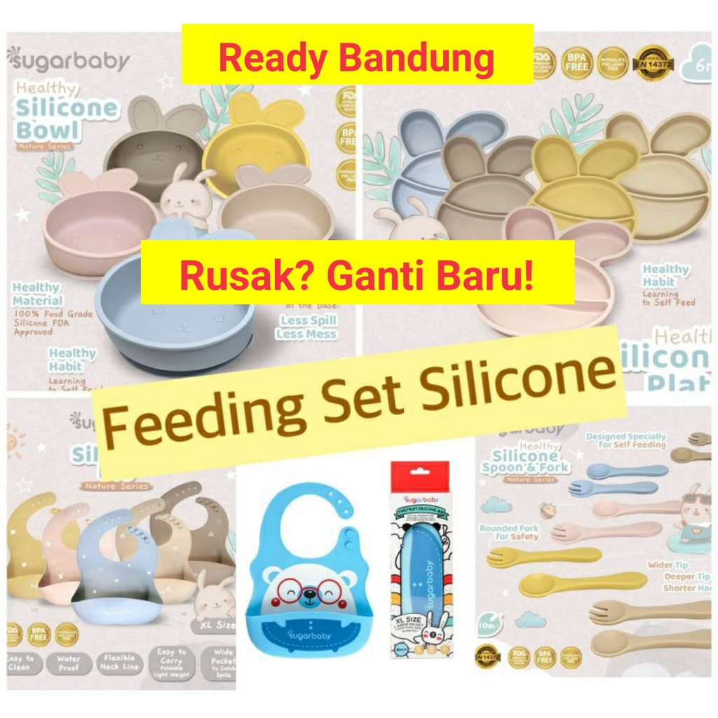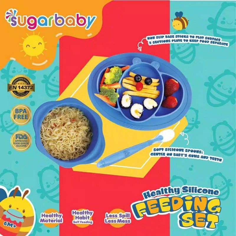 Harga Feeding set makan bayi sugar baby piring set mangkok silikon slaber sugarbaby 4 in1 healthy silicone