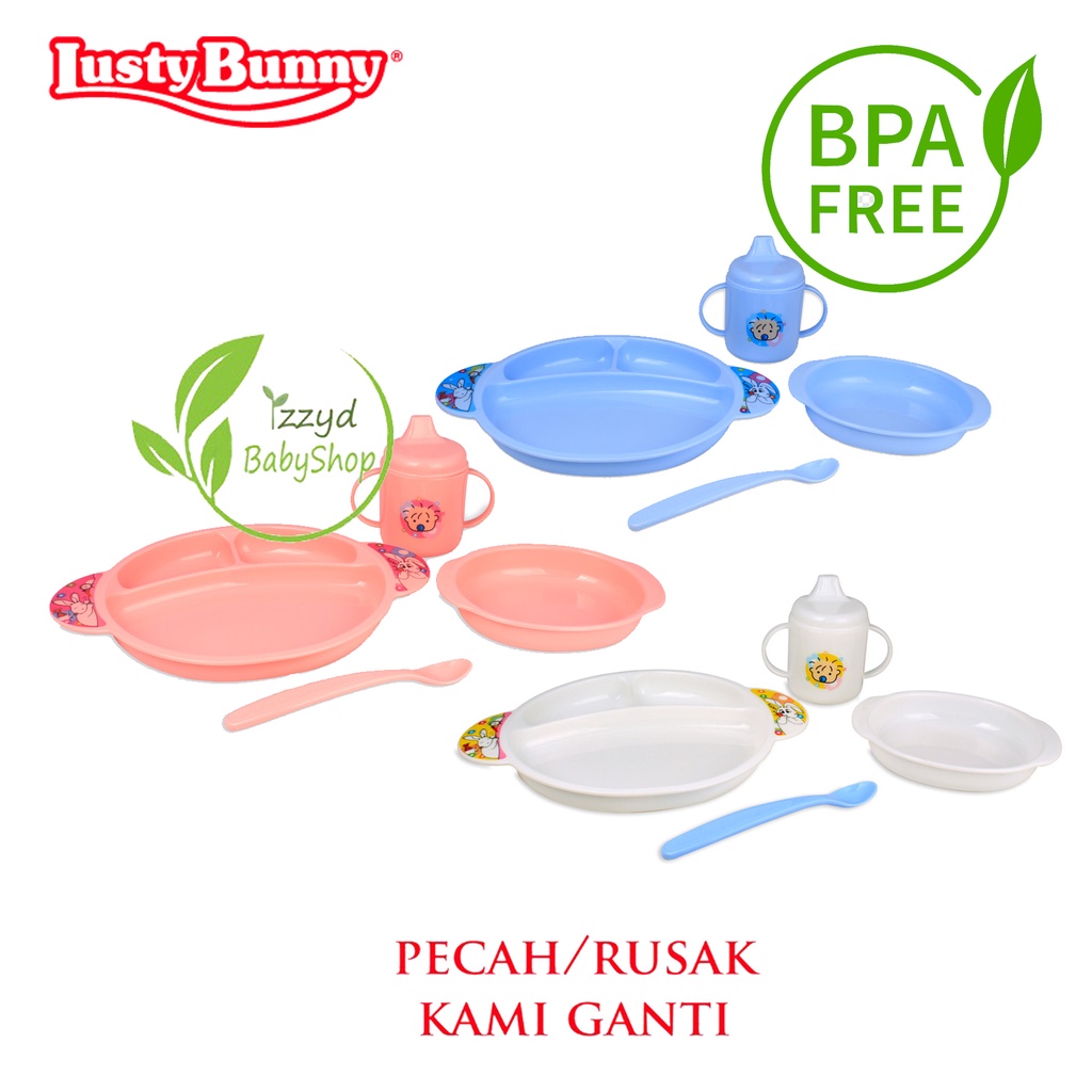 Harga feeding set mini lusty bunny / pigeon / peralatan makan bayi, mangkok piring makan, food maker mpasi, sikat botol