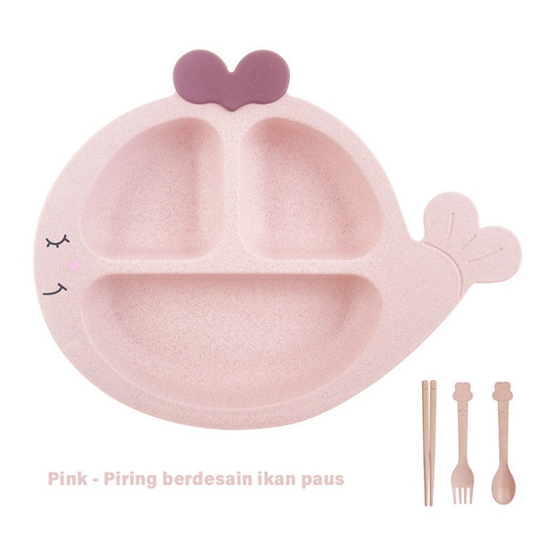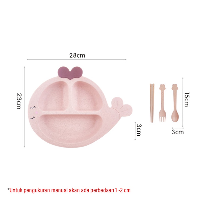 DO-C373 Piring Makan Anak Karakter Miki Set Sendok Garpu / Mangkok Makan Wheat Straw / Tempat Makan Anak Set / Mangkuk Makan Bayi Bahan Jerami Gandum
