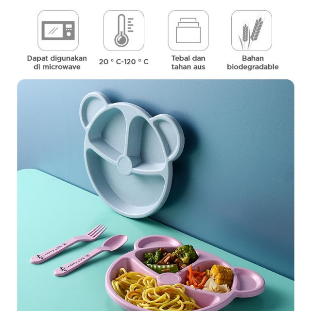 Harga HanyaBeli Peralatan Makan Piring Anak Bayi Set Motif Beruang Free Sendok Garpu