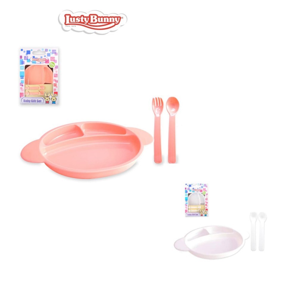 Harga Lusty Bunny Perlengkapan Alat Makan Bayi Piring Bundar 3 Sekat Sendok Garpu Gift Set Feeding Baby