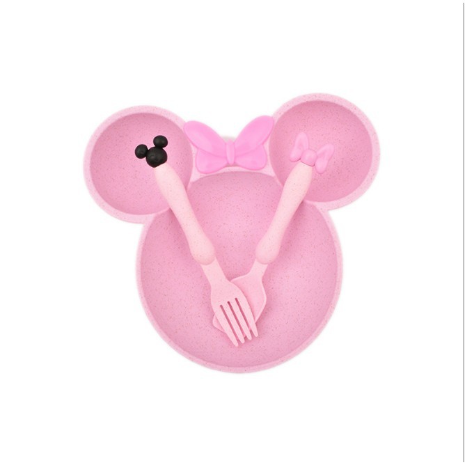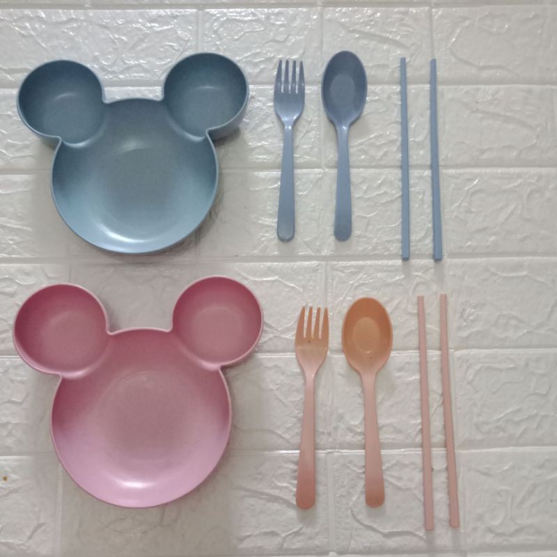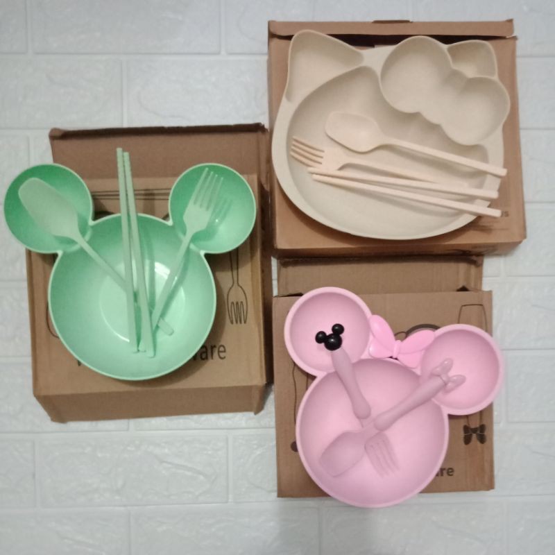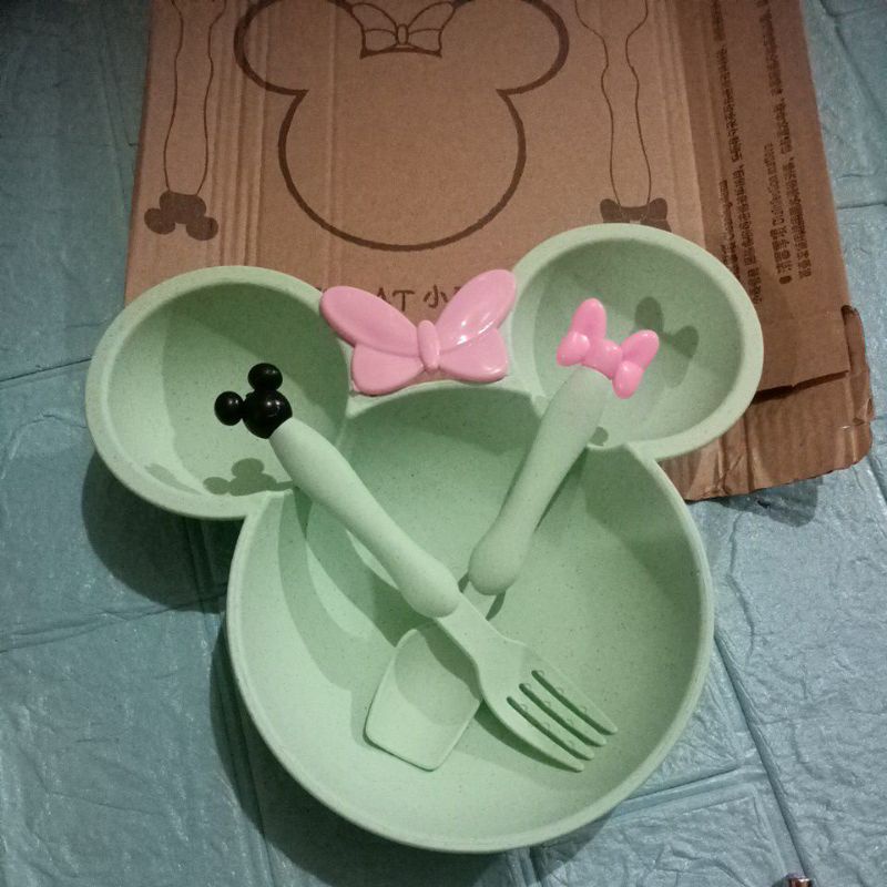 Piring Mickey Minnie Set Anak atau Bayi bahan jerami premium