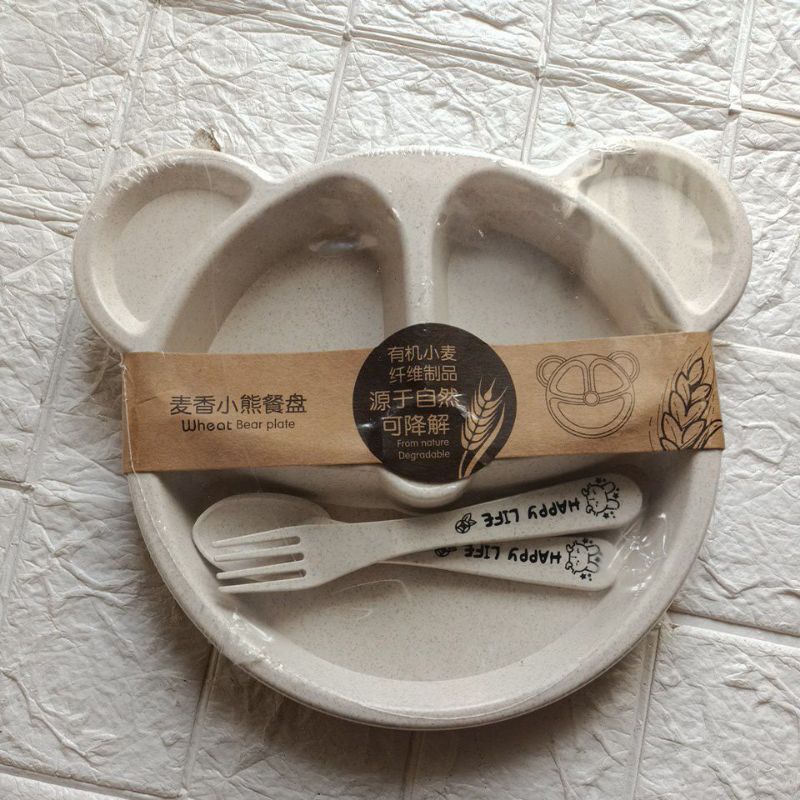 SET Piring makan anak bayi MPAsi organik bahan GANDUM motif OWL 4 in 1 BPA FREE / set anak Piring makan wheat 4 in 1 lucu anak