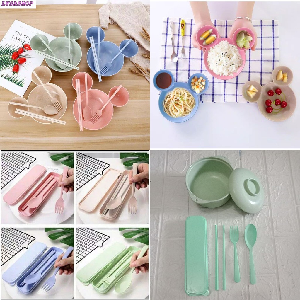 Harga LYSASHOP - PIRING MANGKOK SET 4in1 3in1 SENDOK GARPU SUMPIT JERAMI PERALATAN MAKAN ANAK BERKUALITAS