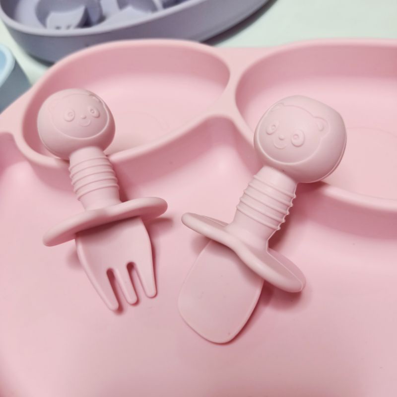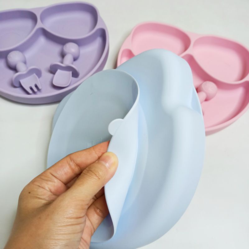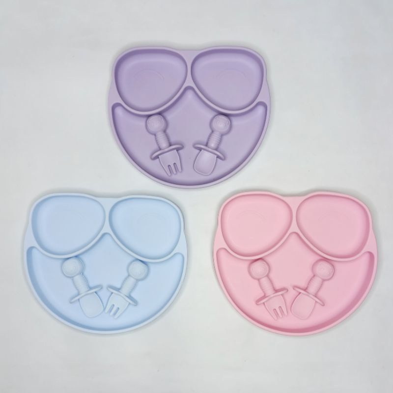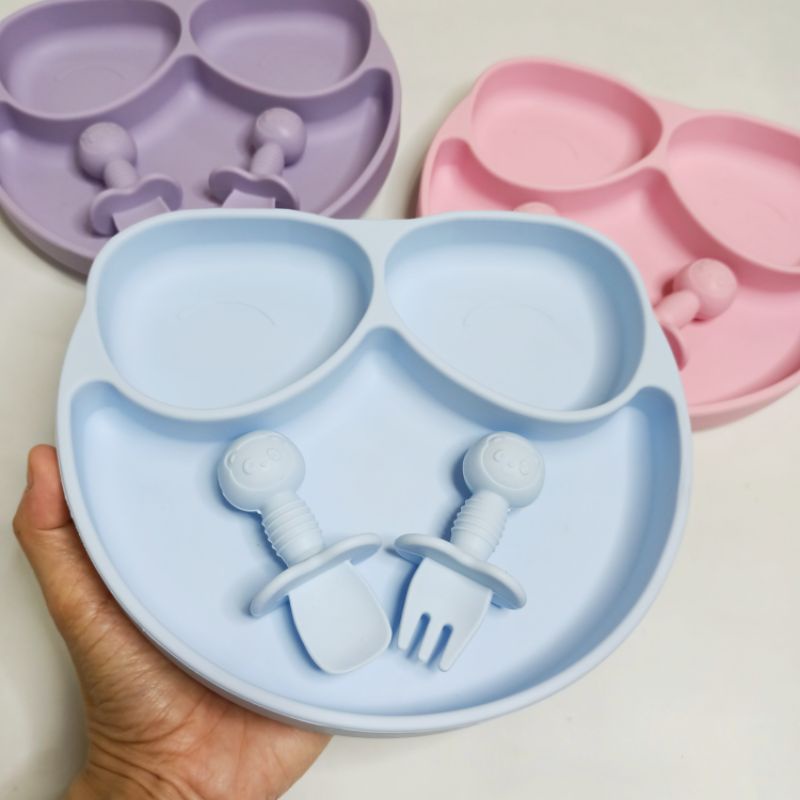 Piring dan sendok makan bayi set sekat 3 devided plate with spoon feeding set piring BPA FREE S1