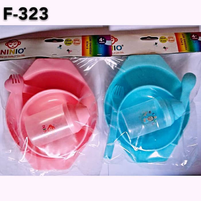 Harga Ninio Baby Feeding Set 5in1 F323 - Set Alat Makan Bayi Anak isi 5 pcs - Piring Mangkok Sendok Garpu Botol