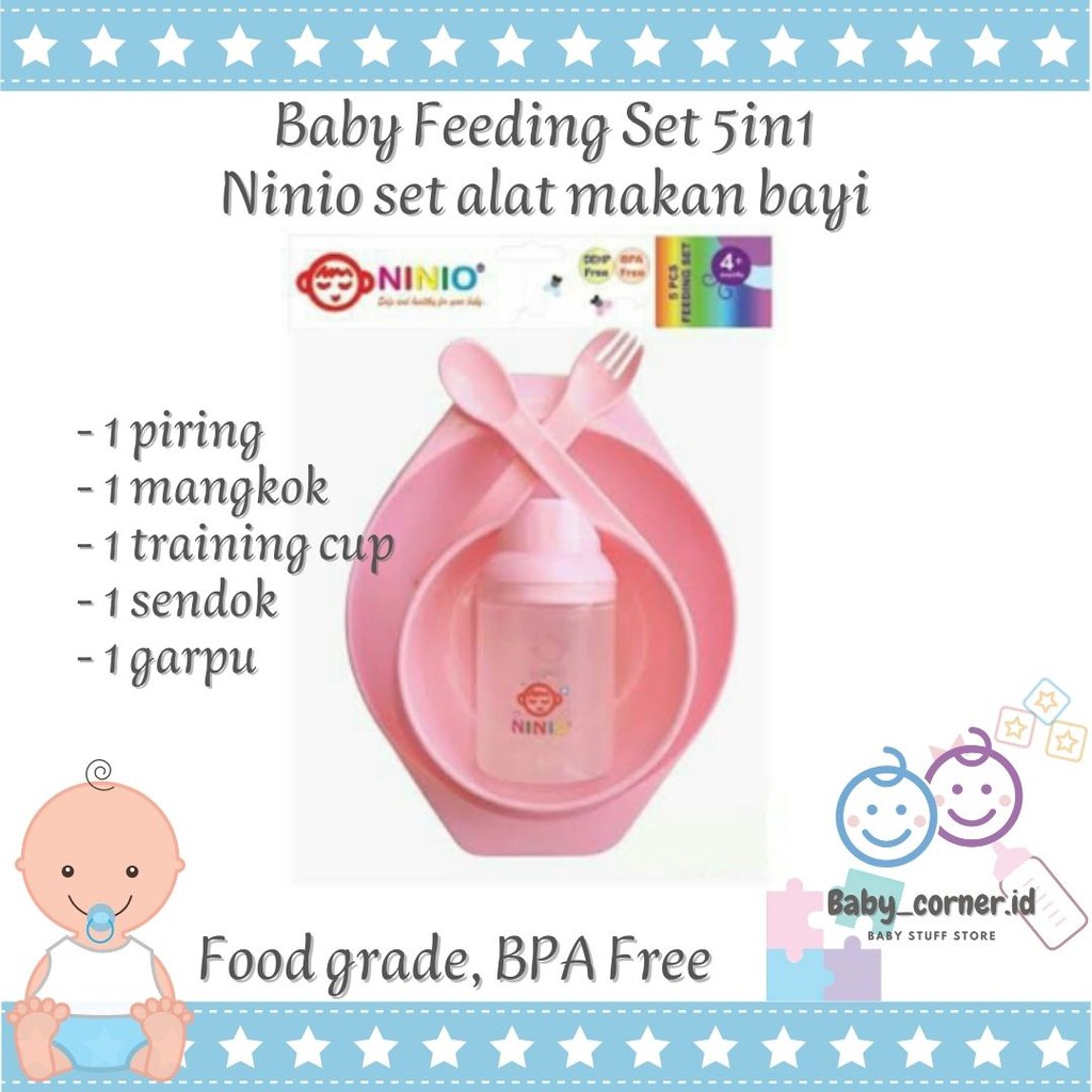 Harga NINIO -piring sendok garpu bayi - feeding set 5 in 1 isi 5pcs - set alat makan bayi anak balita