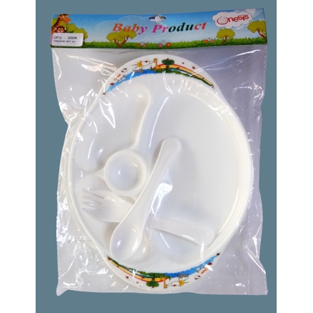 Harga Onesis 3004 Tempat Makan Bayi Piring Sendok Garpu/Perlengkapan MPASI Bayi/Feeding Set Onesis