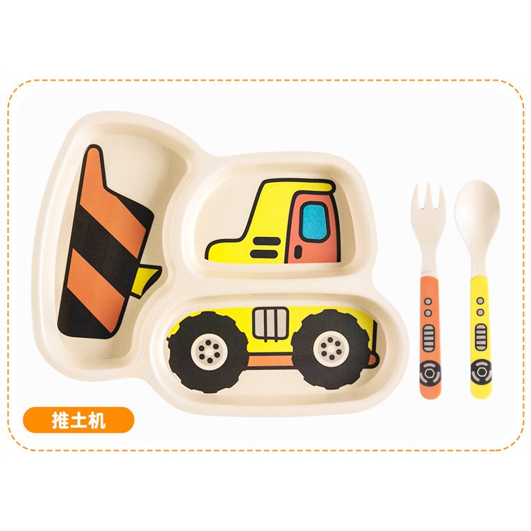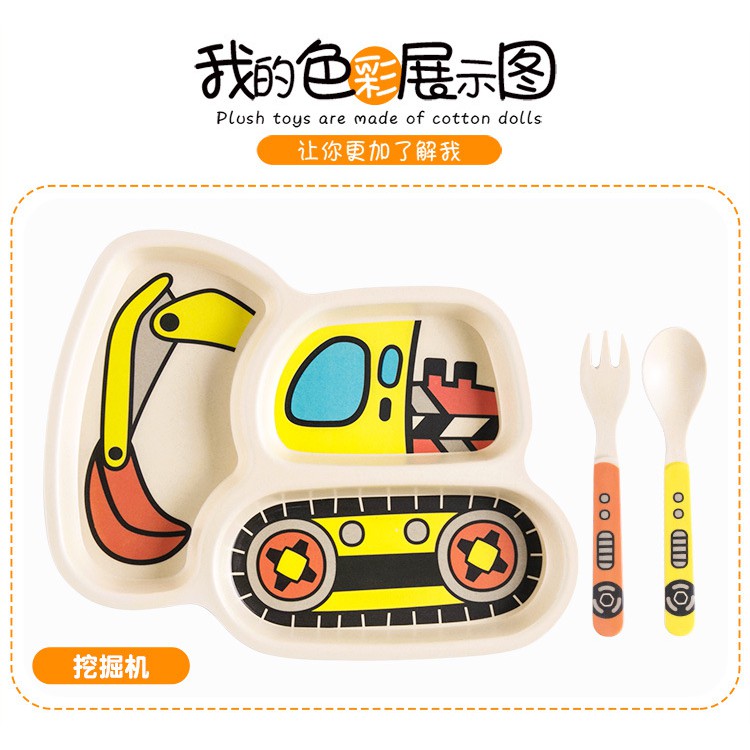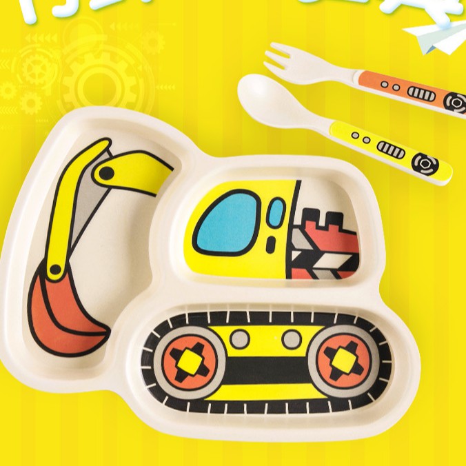 Harga P 84 Bamboo Fiber Baby Kid Dining Set Alat Berat Excavator Crane Piring Sendok Garpu Transportasi
