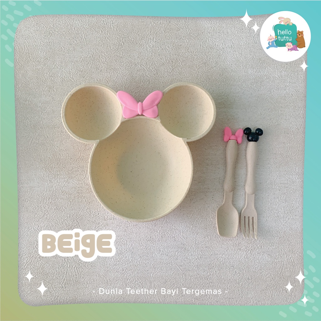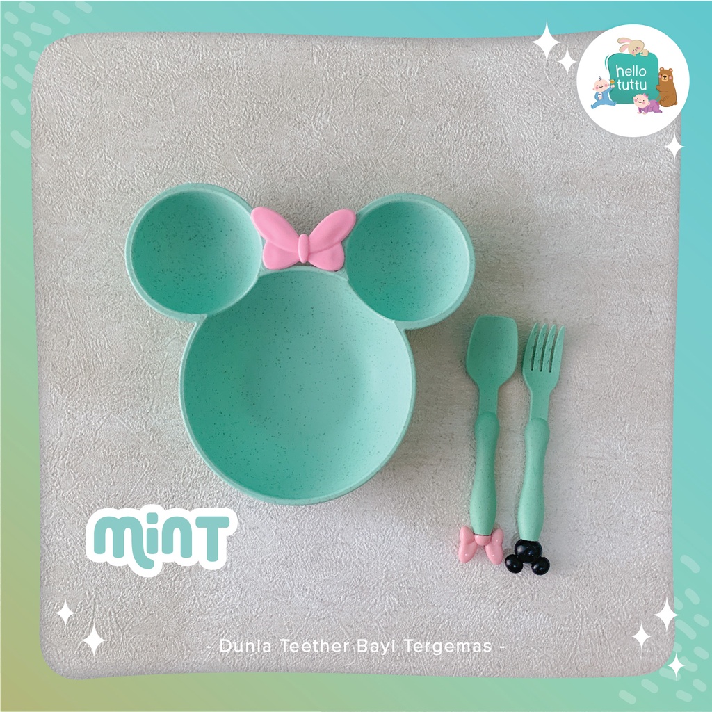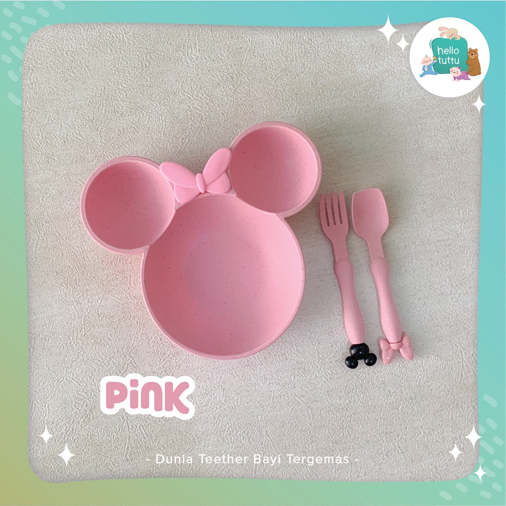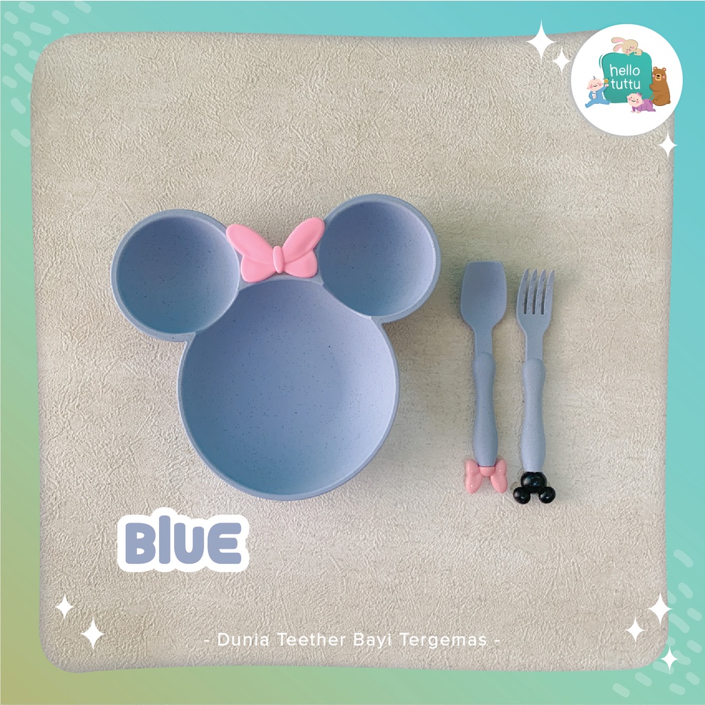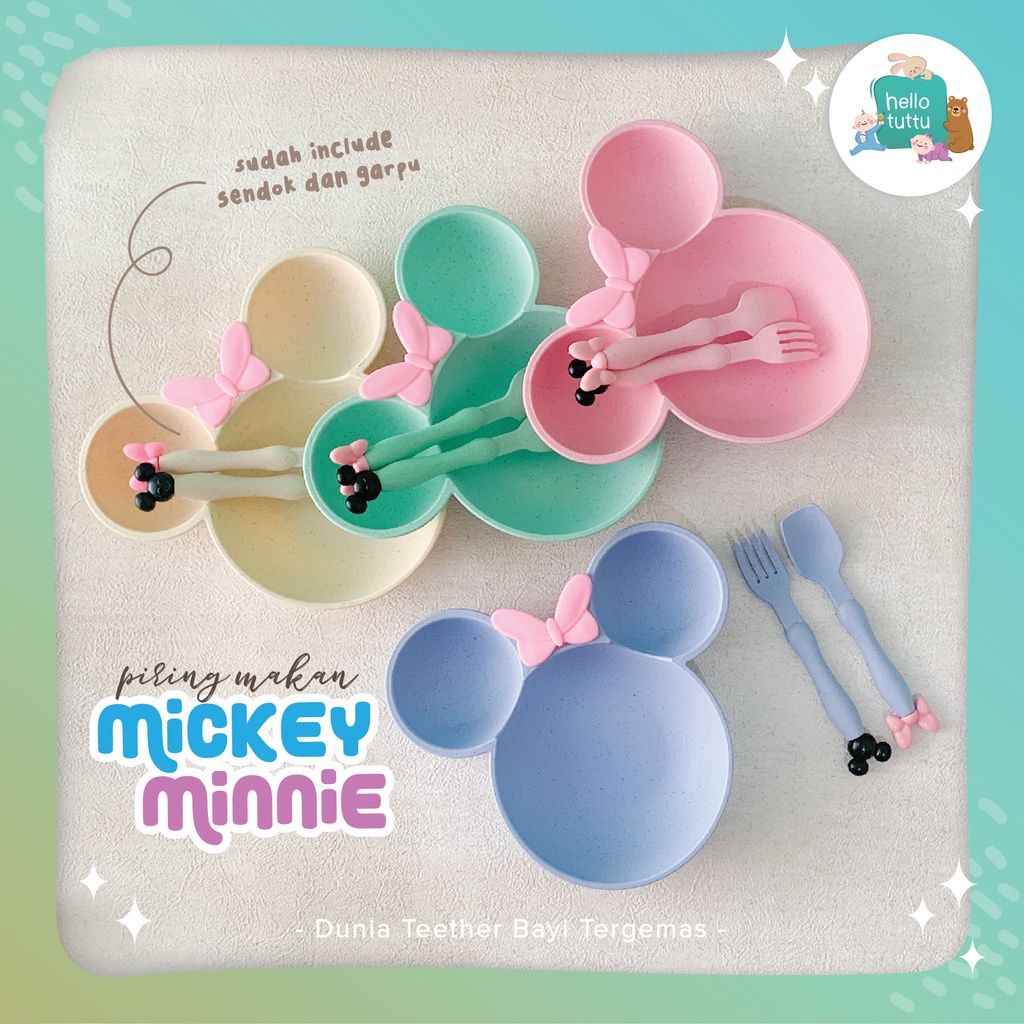 Harga (Packing Bubble) Piring makan anak Mickey Minnie / Free Sendok Garpu - Hellotuttu