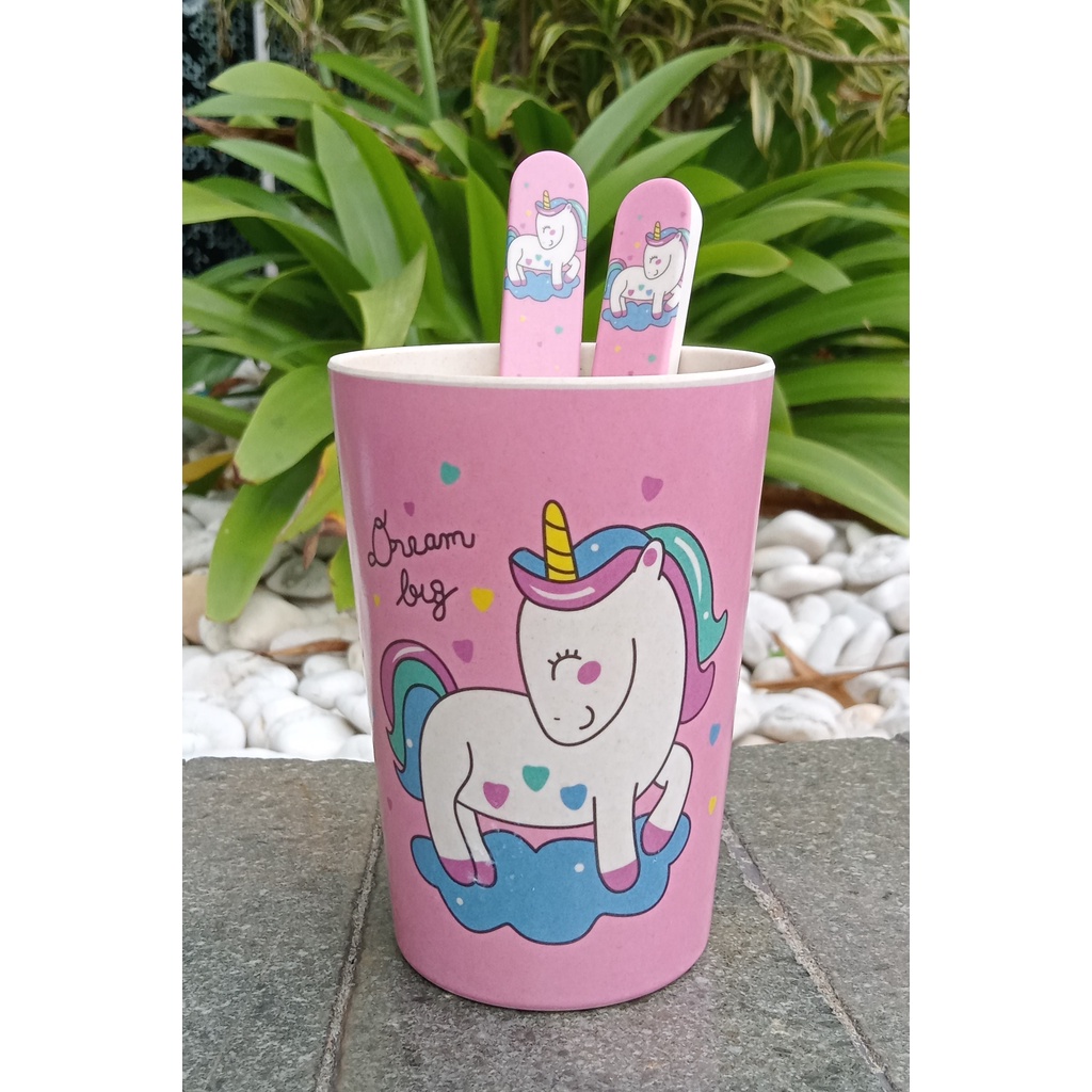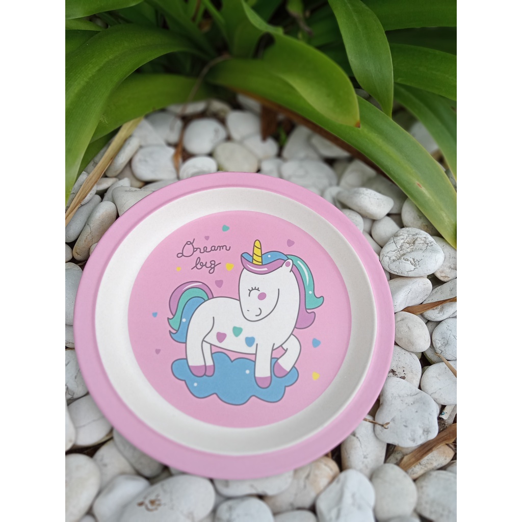 Harga Peralatan Makan Anak Serat Bambu Unicorn /Piring Makan Anak Unicorn/Piring Unicorn Set New