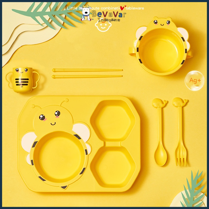 Bevavar Piring Makan Anak lucu Karakter lebah Free Sendok Garpu