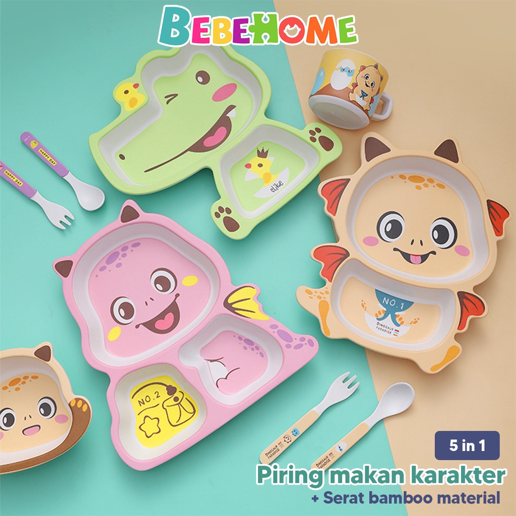 Bebehome Piring Bambu Anak/ Bambu Kids/ Peralatan Makan Anak Set Bahan Bambu/ Bamboo Set Alat Makan Anak Bayi