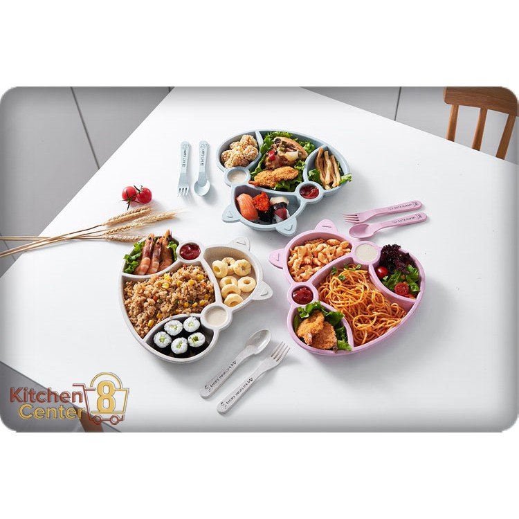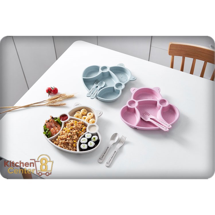 Bamboo Fiber Feeding kids Set / Peralatan makan bayi / Piring anak Kotak / piring bamboo bambu