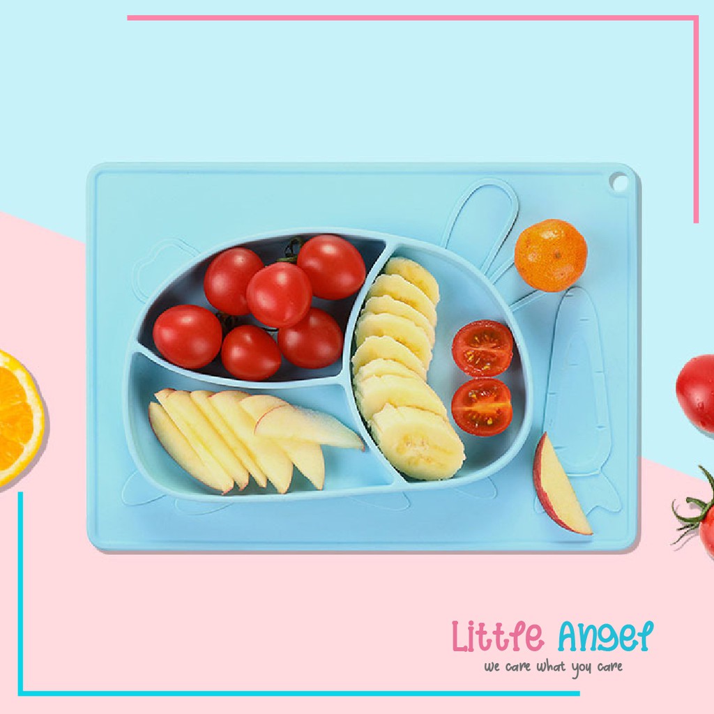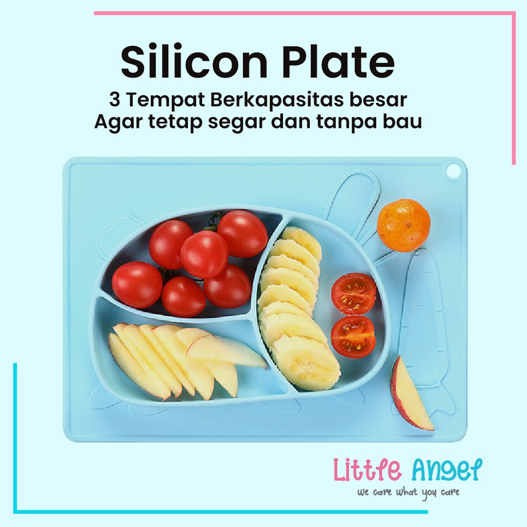 Mikimaru Baby Silicone Round Plate Premium | Food Grade Piring Bulat Makan Silikon Bayi Sendok Garpu BPA Free