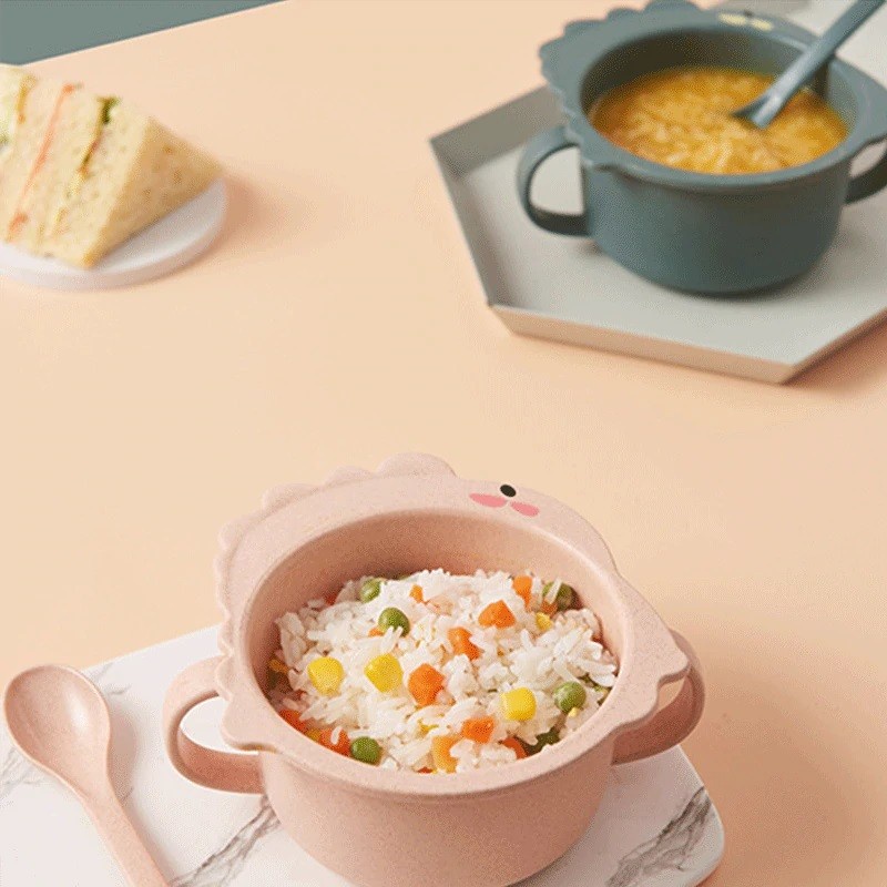 Mangkok Set Peralatan Makan Anak 4 in1Bahan Jerami Gandum Children Tableware Piring Kartun VS-25
